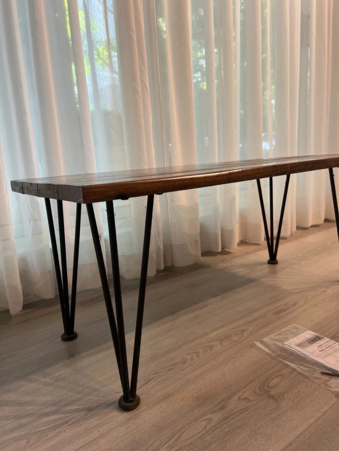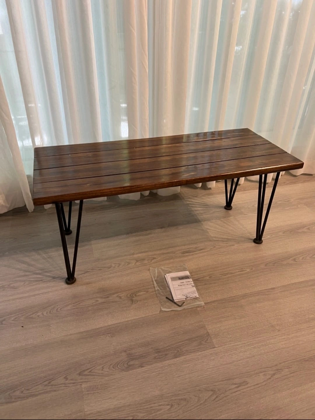 This rustic industrial coffee table featuring acacia wood and iron legs. Sturdy, stylish. Great for the patio or balcony.