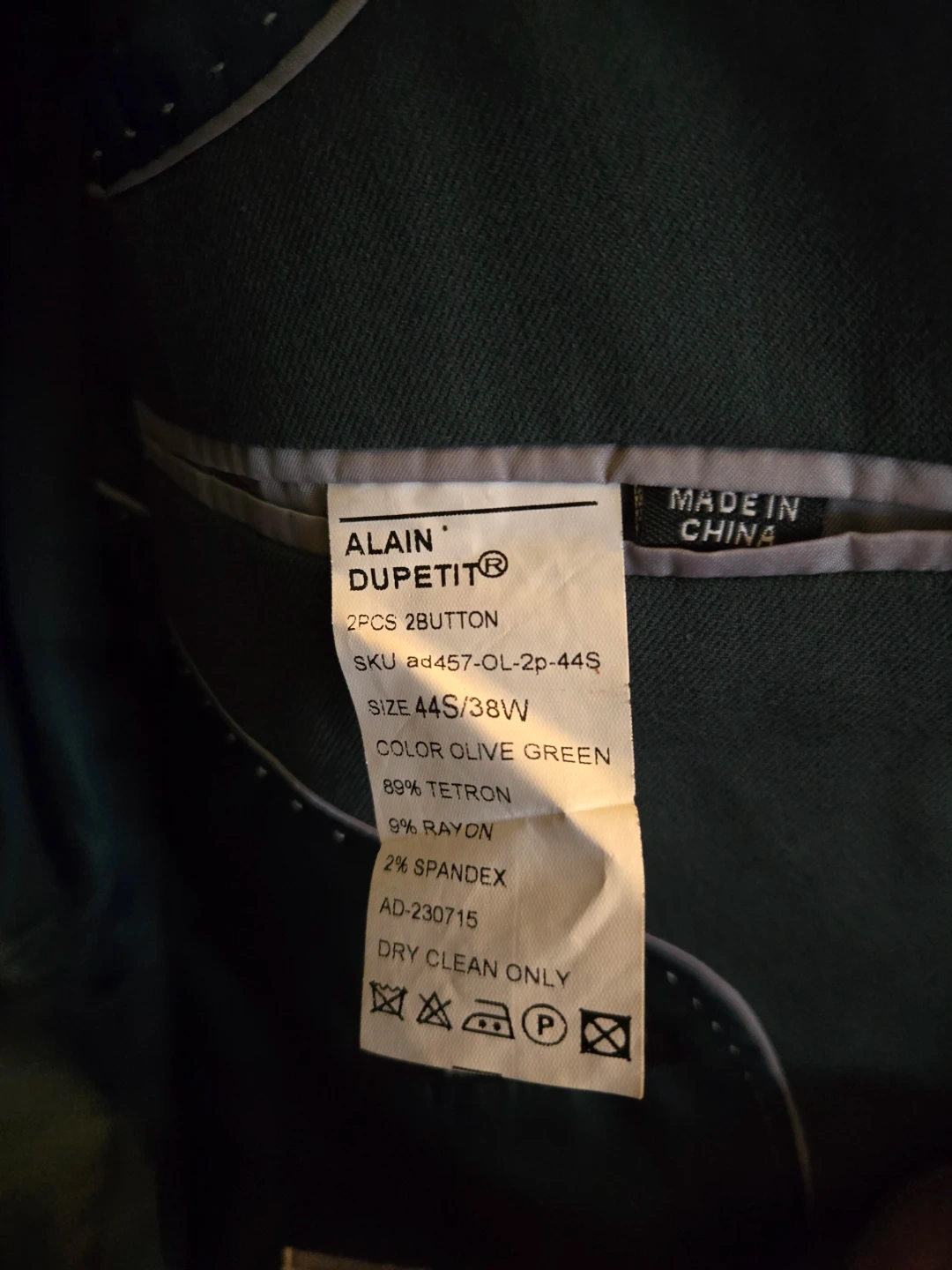 Selling 2 Alain Dupetit suit jackets (Olive green and Blue. Size 44S/38W