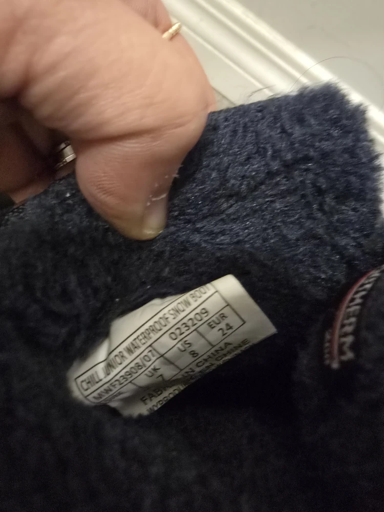 Selling a pair of Mountain Warehouse Chill Junior Waterproof Snow Boots. They're a US size 8, UK size 7, and EUR size 24. These boots are perfect for keeping little feet warm and dry in the snow!