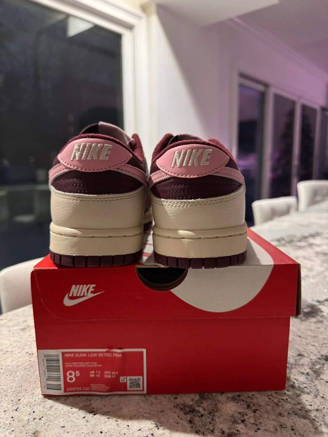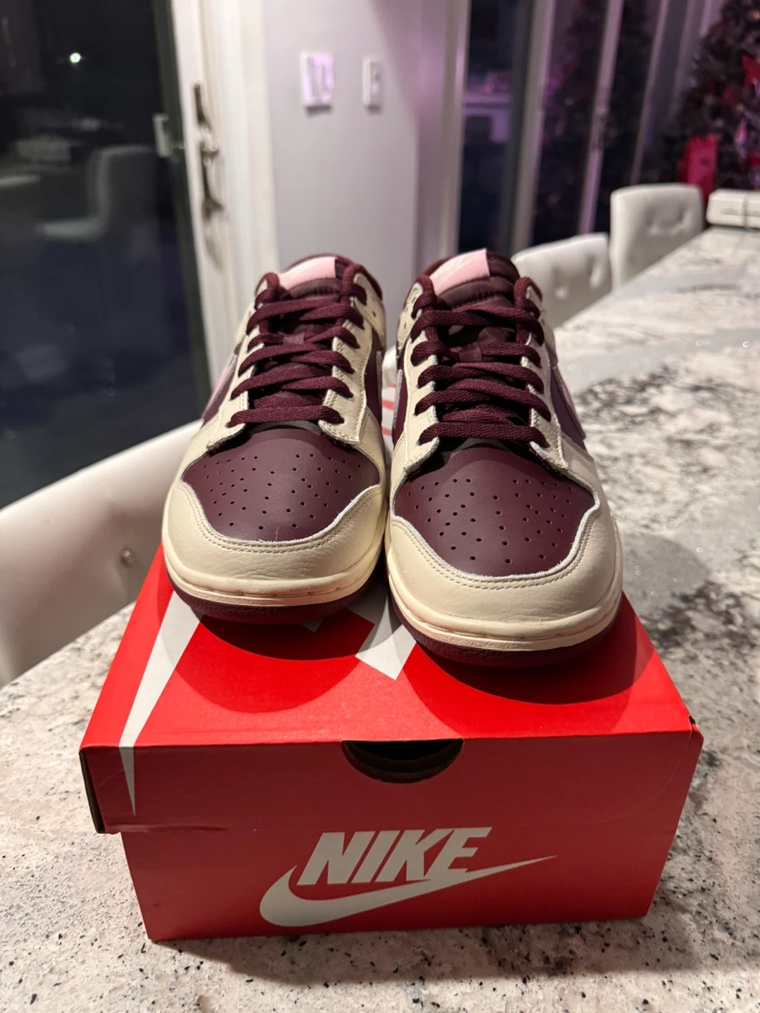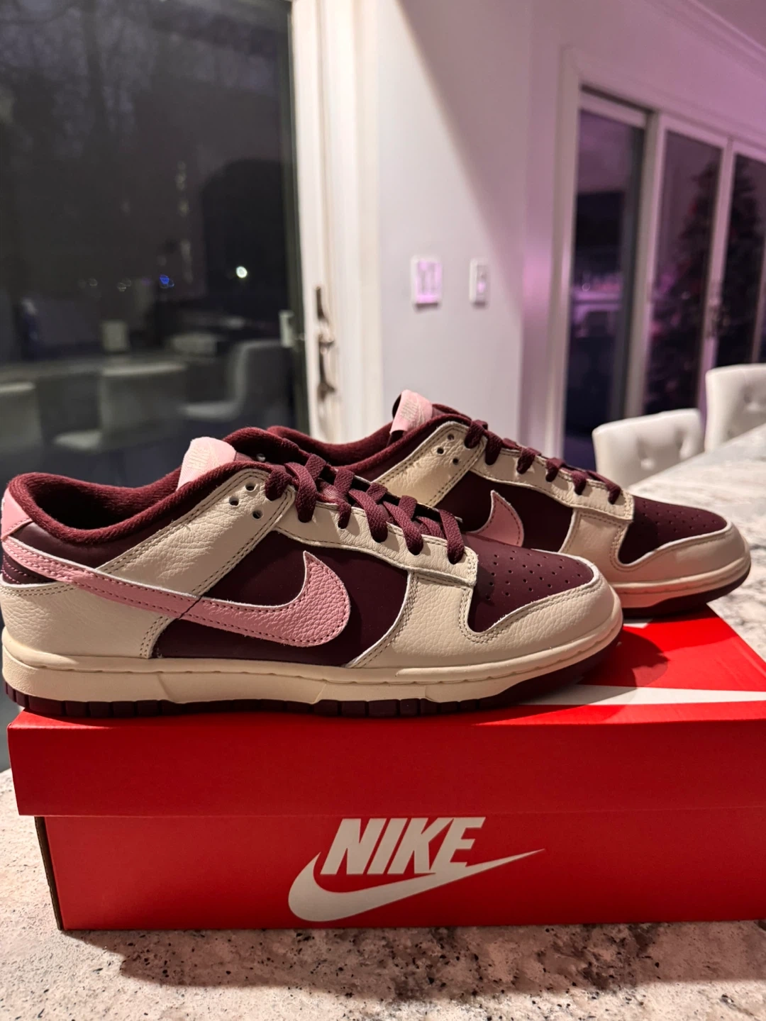 • Super clean Valentine’s Day color scheme with burgundy accents and pink Swoosh
