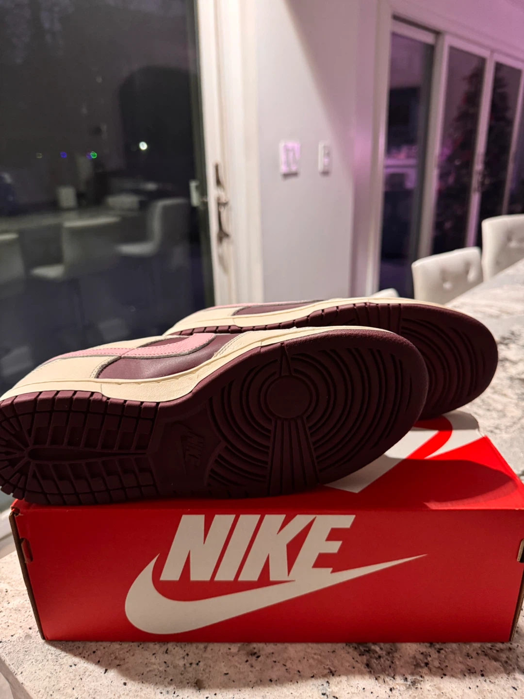 • Super clean Valentine’s Day color scheme with burgundy accents and pink Swoosh