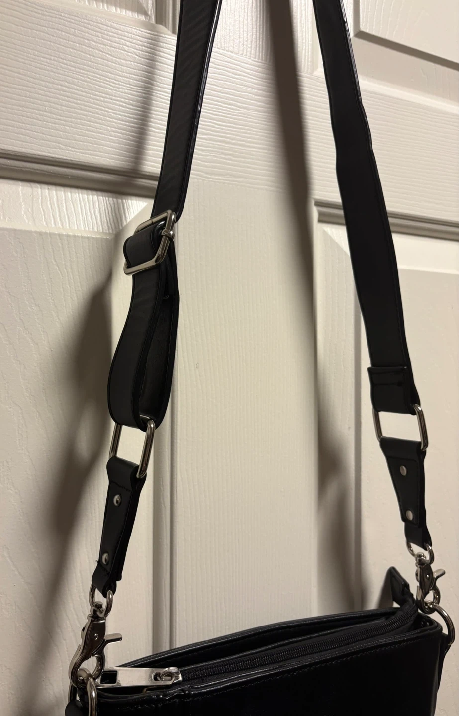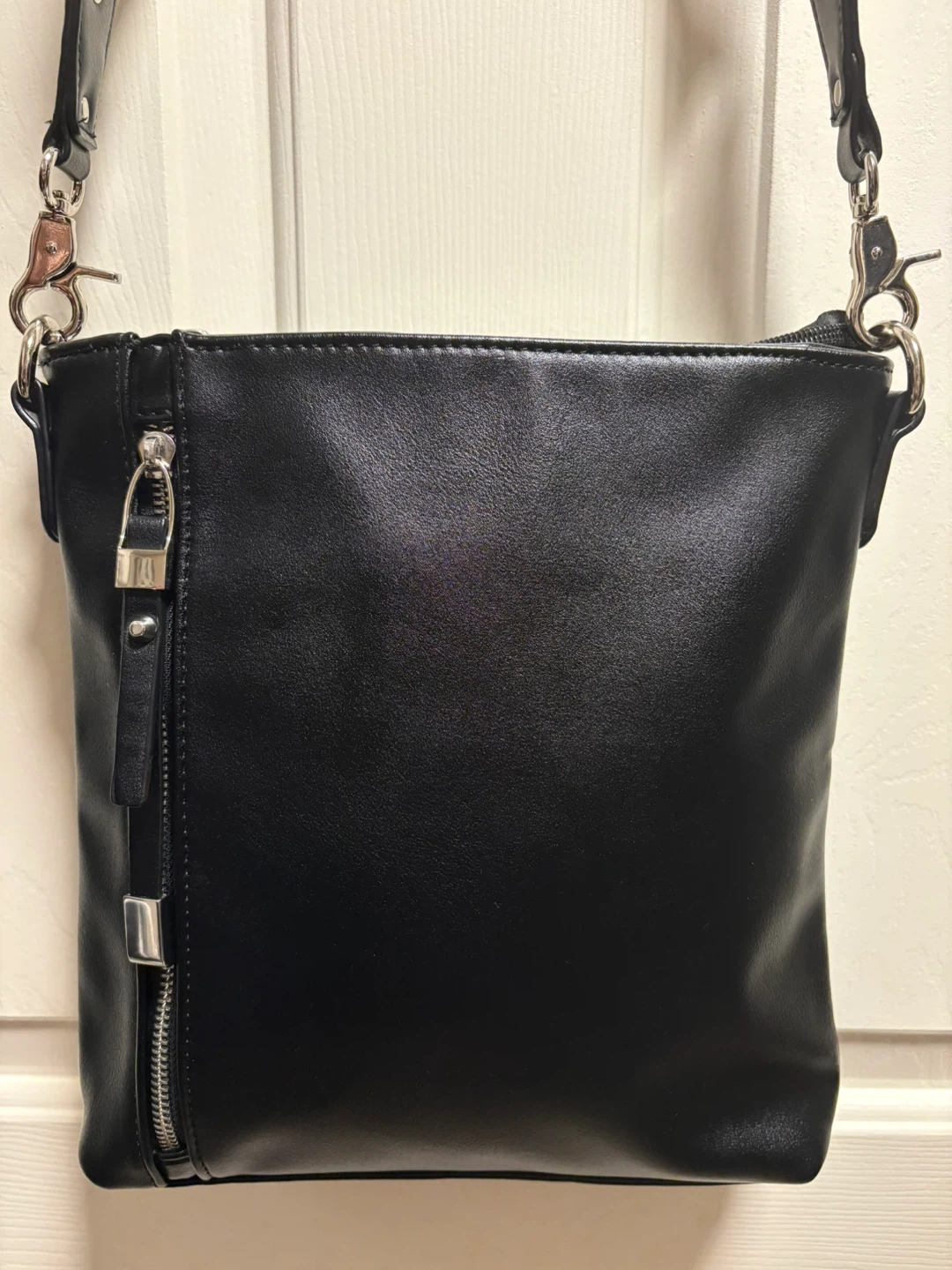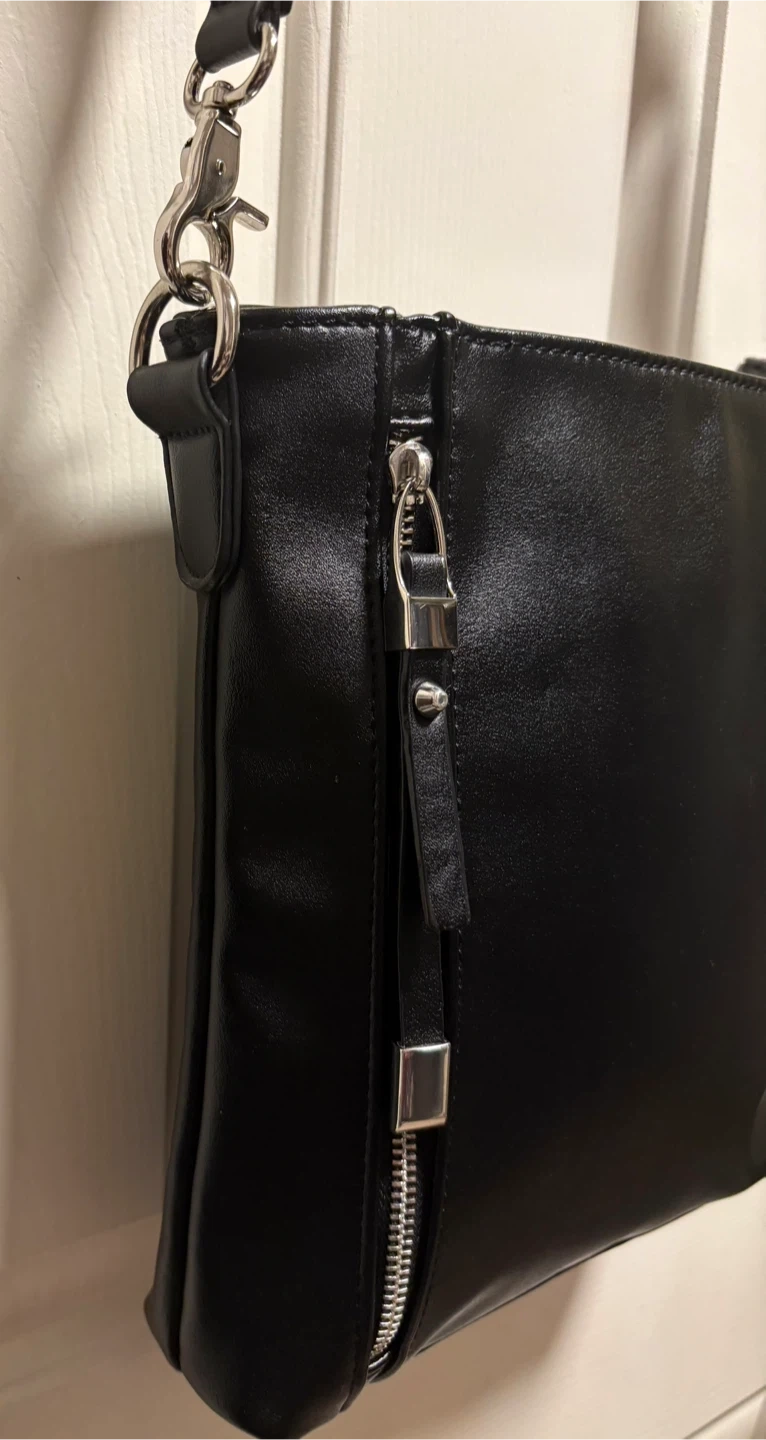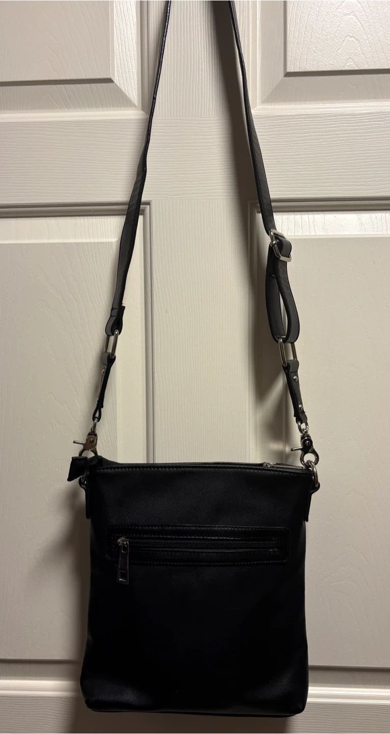 A sleek Sondra Roberts black crossbody bag with a vegan leather finish. It's got a zip closure and an adjustable strap for comfort. This bag is perfect for everyday use! It’s in perfect condition, just a beautiful crossbody bag! Pick up in Chestermere.