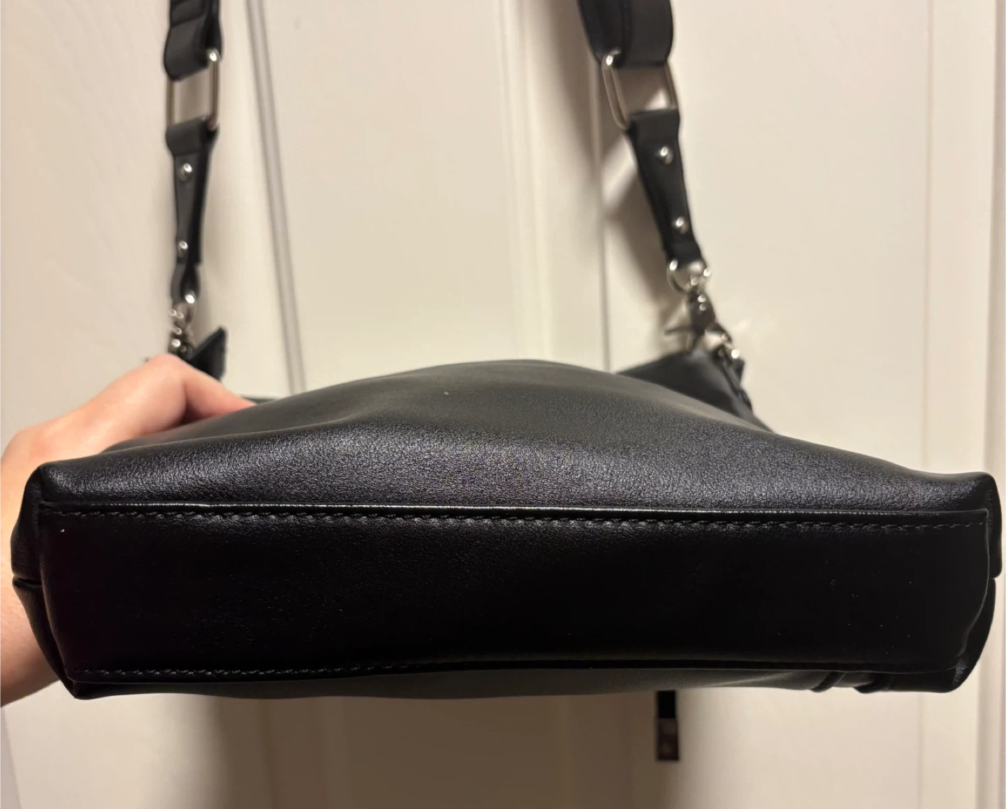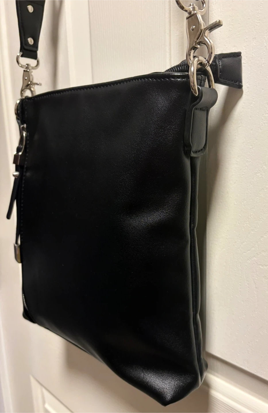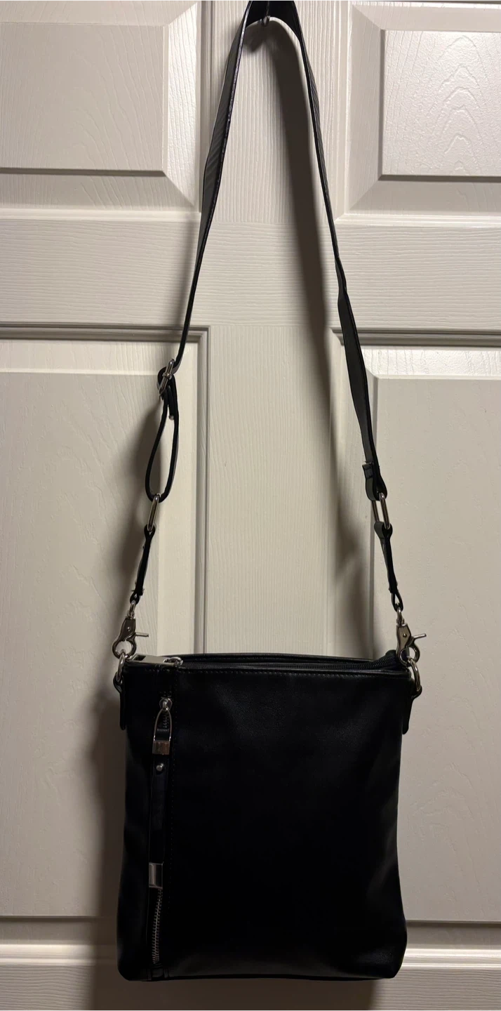 A sleek Sondra Roberts black crossbody bag with a vegan leather finish. It's got a zip closure and an adjustable strap for comfort. This bag is perfect for everyday use! It’s in perfect condition, just a beautiful crossbody bag! Pick up in Chestermere.