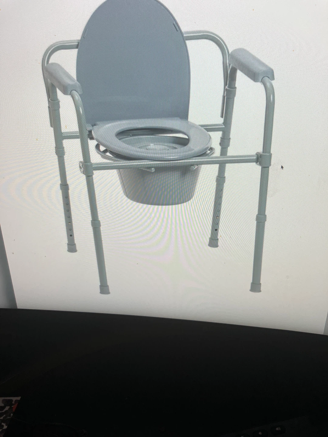 This commode chair is designed for comfort and stability. It features padded armrests and a removable pail. The height is adjustable to suit your needs.
