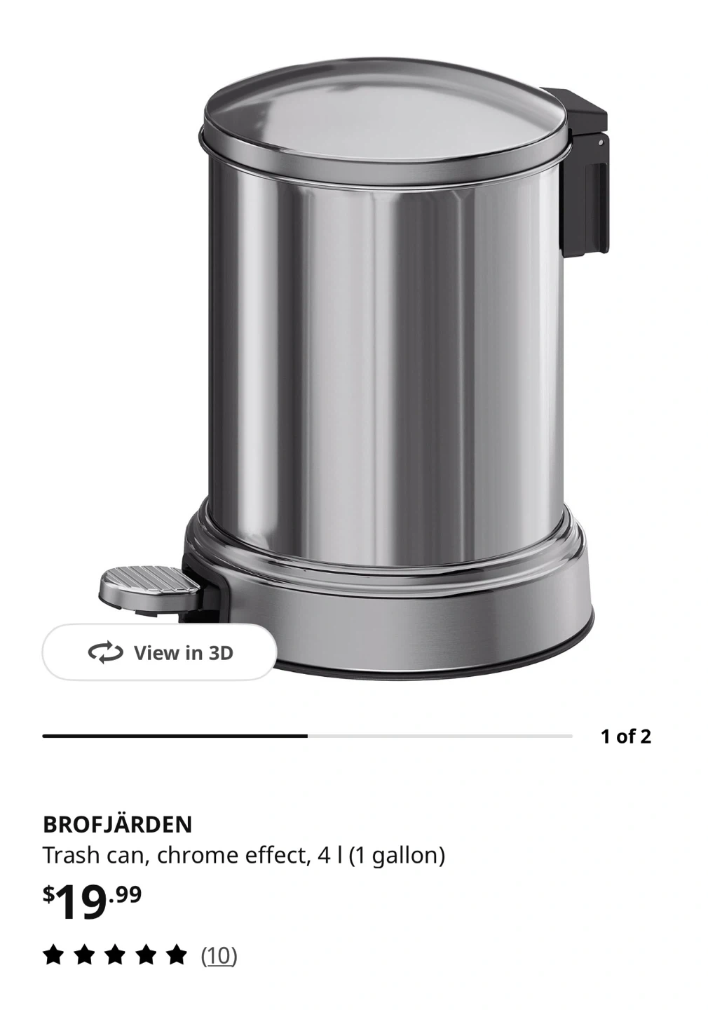 Buy & SellIKEA Trash Can - 4LIKEA Trash Can - 4L$10This is a BROFJÄRDEN trash can with a chrome effect finish. It's a 4-litre (1 gallon) capacity pedal bin. Stainless steel construction.ConditionLike newWHERE TO MEETCheck LocationView MapSELLERverifiedAbhishekDowntown28024 reviews0 chats·0 favorites·43 viewsSEND CHAT TO SELLERHi Abhishek! I’m interested in your listing.Hi Abhishek! I’m interested in your listing.Get the Karrot app to chatSign In to chat