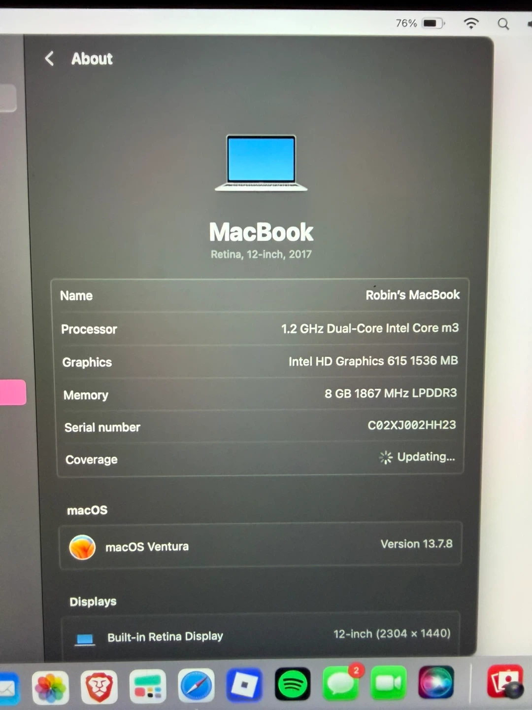 12-inch Retina display. Runs on macOS Ventura.