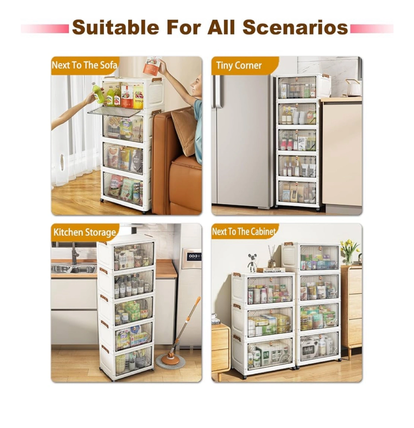 5 tier Stackable Storage Cabinet Organizer with Wheels
