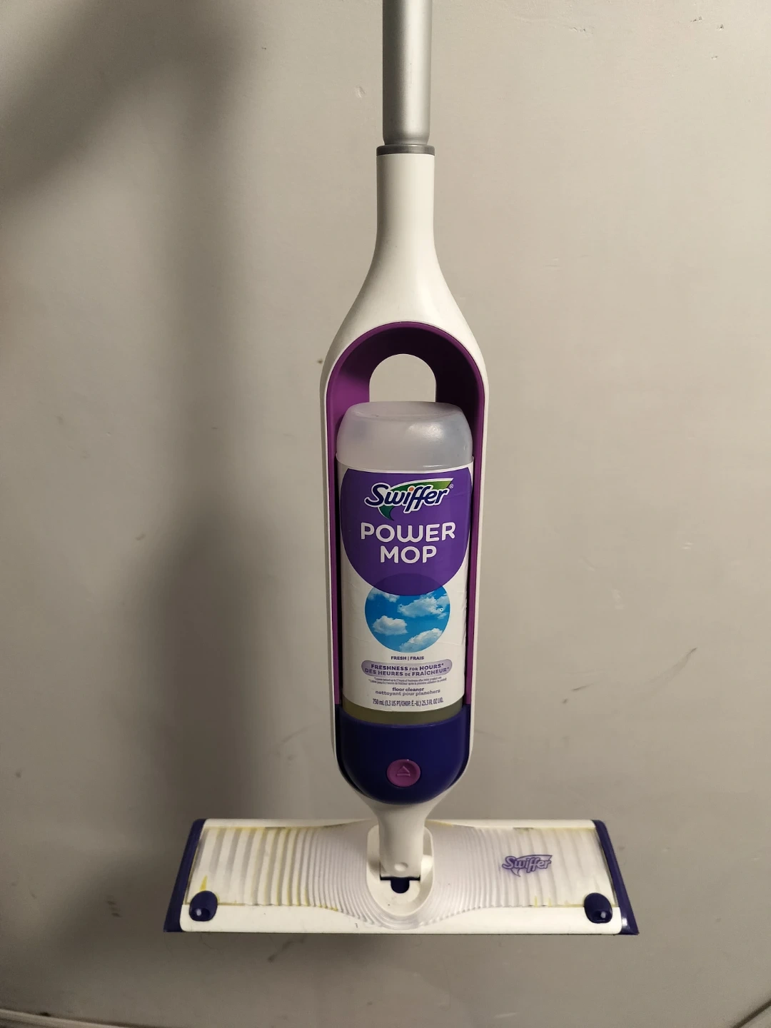 This Swiffer Power Mop comes with a refillable cleaning solution bottle. It's designed for quick and easy floor cleaning. Get your floors sparkling with minimal effort!