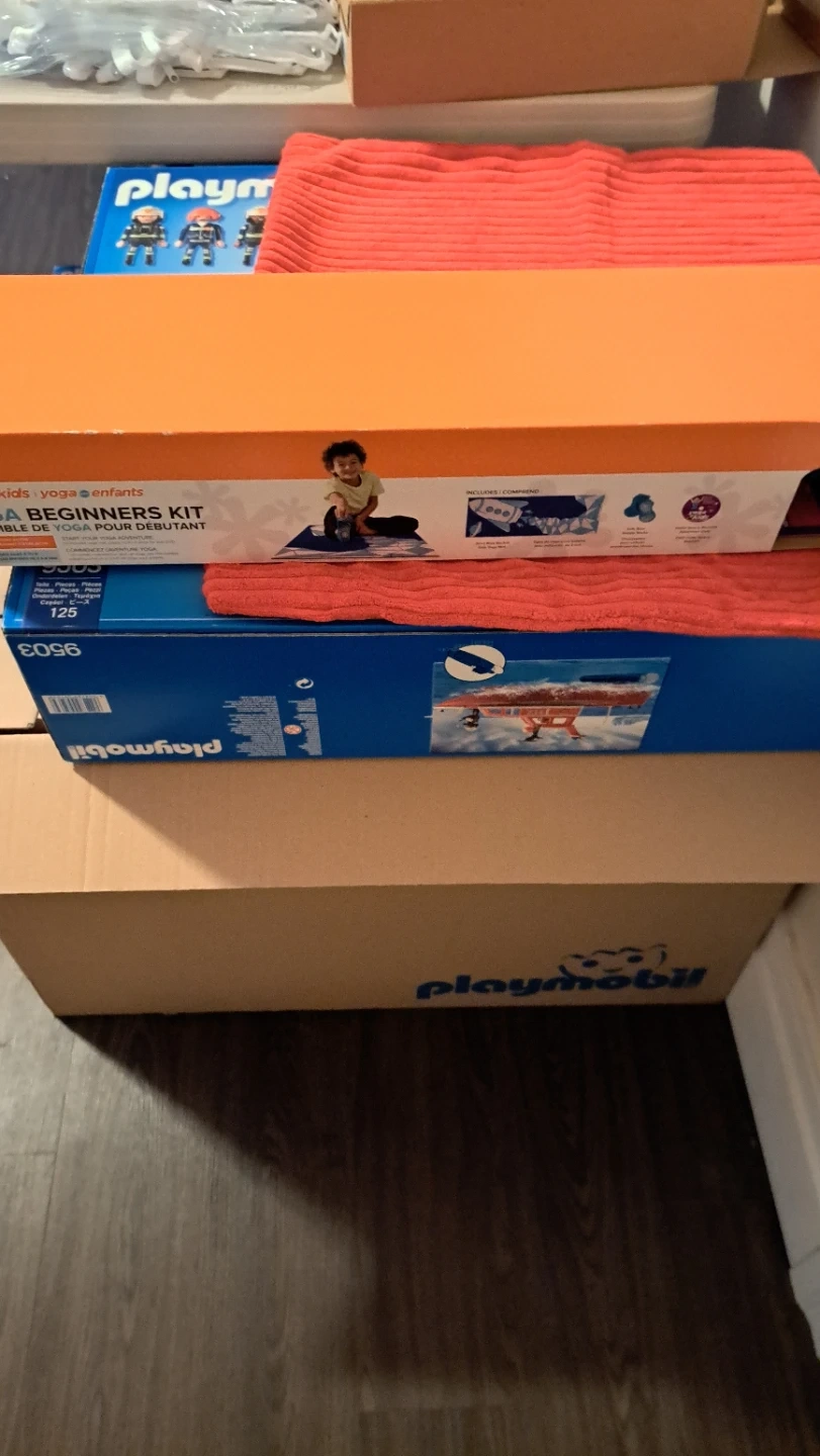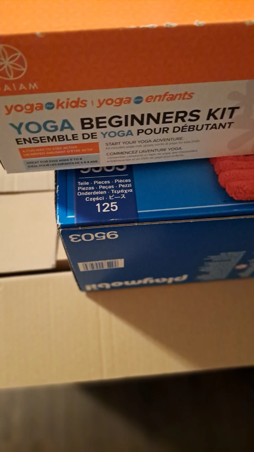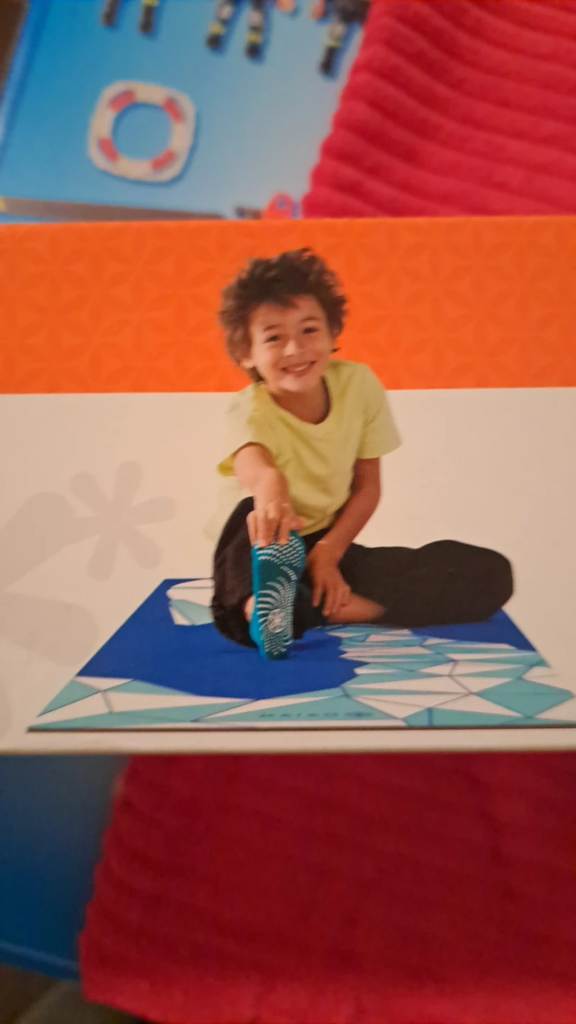 This is a brand new kids yoga mat beginners kit. It comes with a 3mm blue rocket yoga mat. Suitable for kids aged 5-8.