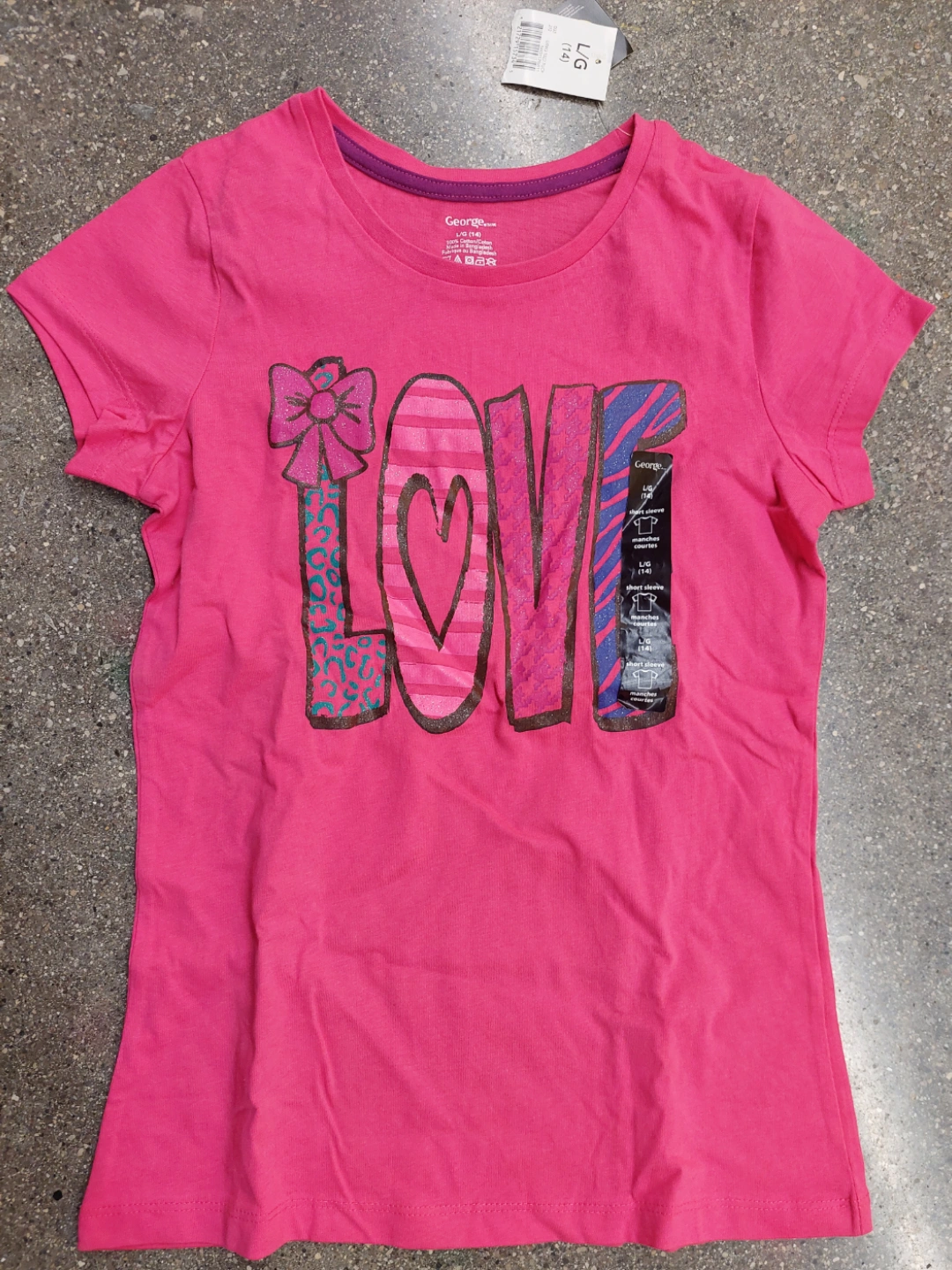 New with tags Girls hot pink tee size large 12/14- fit is more for a size 12. smk/Pet free home.pick up only.