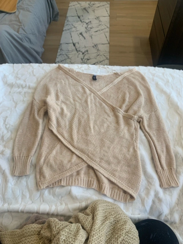 Wrap yourself in comfort with this gently used LOFT Lab cream-coloured sweater, size XS. This stylish and cozy sweater features a unique wrap design that adds a touch of elegance to your casual wear. Perfect for layering on chilly days or adding a chic touch to your outfit. Brand: LOFT Lab, Size: XS, Colour: Cream, Style: Wrap Sweater. Feel free to message if you have any questions!
