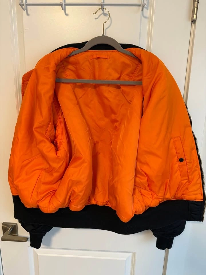 Original Alpha Industries MA-1 Bomber Jacket in men's size L (regular fit). Only worn a few times and in very good condition with no rips or stains. Dry cleaned after last use. Pick up in Langley or meet up in Vancouver.