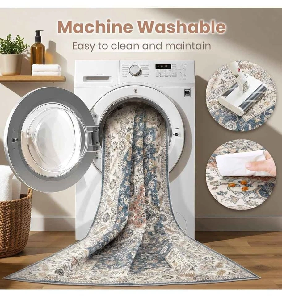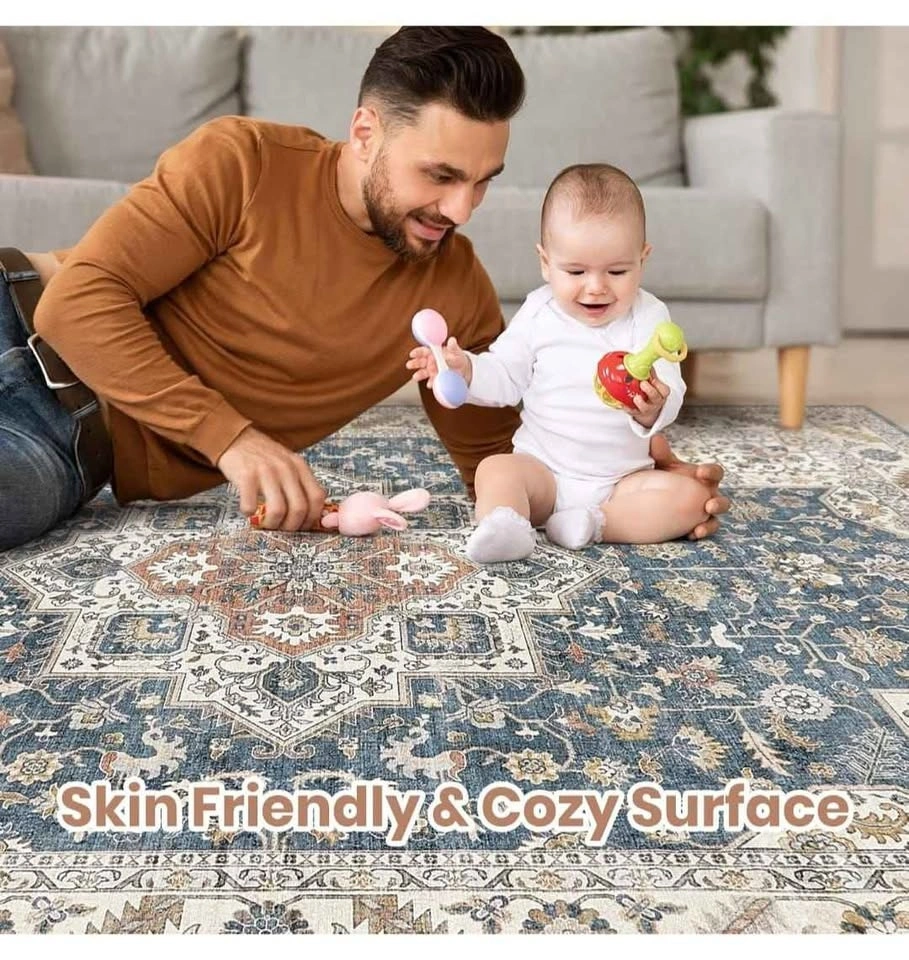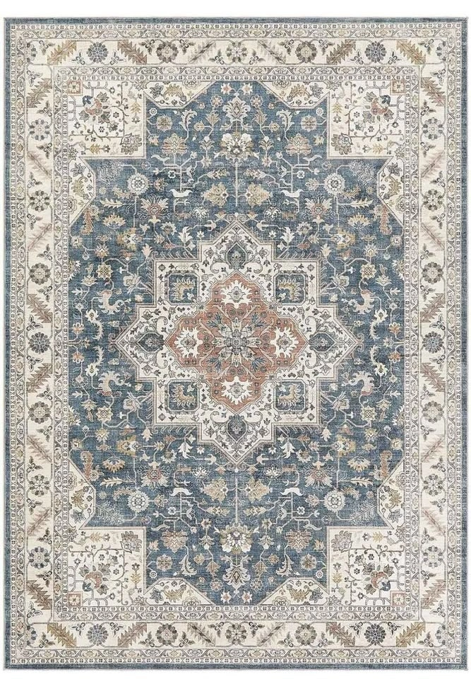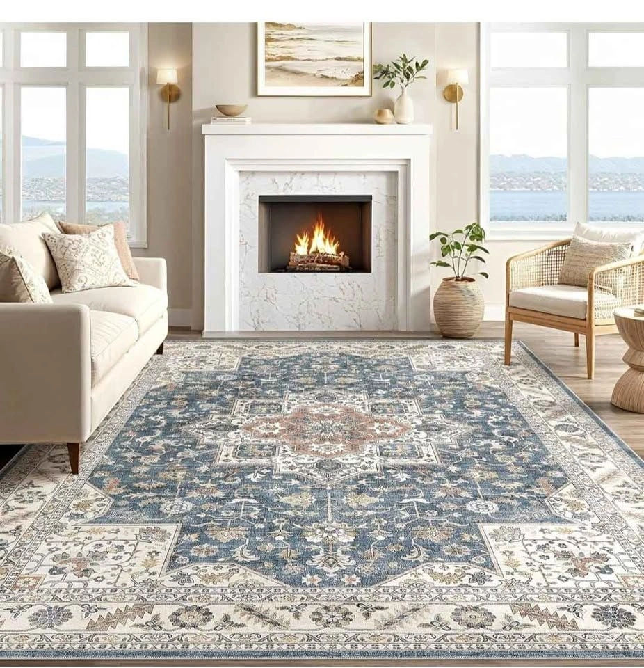 Brand new large soft washable oriental traditional distressed farmhouse rug for bedroom. Indoor floor accent carpet for home office house decor. Vintage Blue #4.