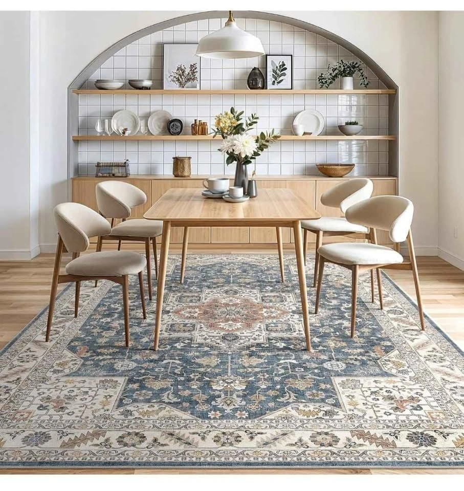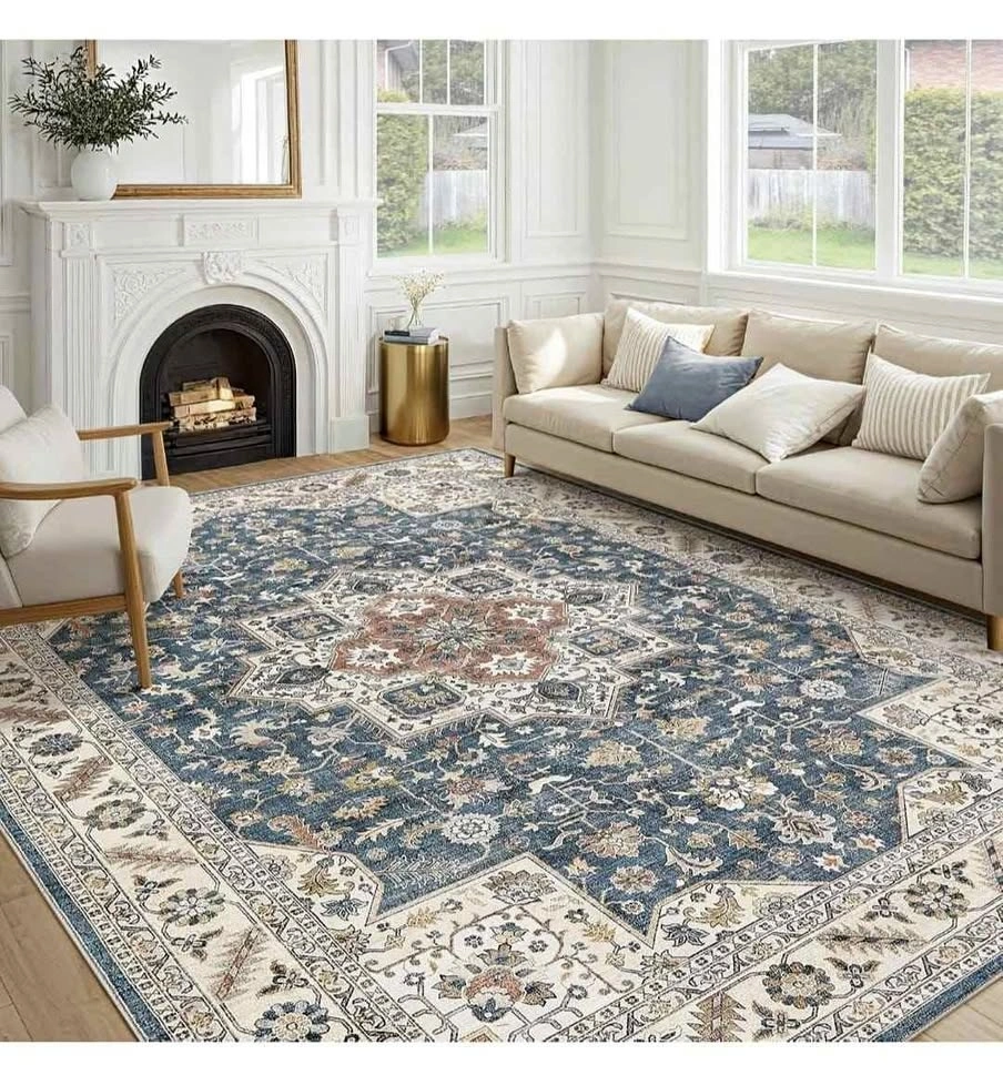 Brand new large soft washable oriental traditional distressed farmhouse rug for bedroom. Indoor floor accent carpet for home office house decor. Vintage Blue #4.