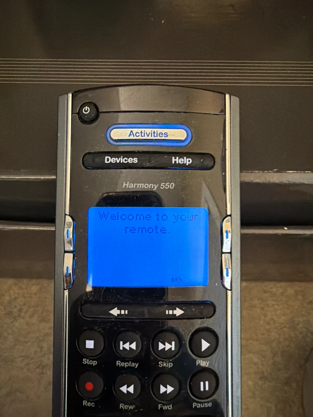 Buy & SellLogitech Harmony 550 Universal RemoteLogitech Harmony 550 Universal Remote$19This is a Logitech Harmony 550 universal remote. It's designed to control multiple devices. Buttons include play, pause, stop, and menu controls.ConditionLike newBrandLogitechWHERE TO MEETPolice StationView MapSELLERverifiedJohnRiver Oaks711 review1 chats·1 favorites·9 viewsSEND CHAT TO SELLERHi John! I’m interested in your listing.Hi John! I’m interested in your listing.Get the Karrot app to chatSign In to chat