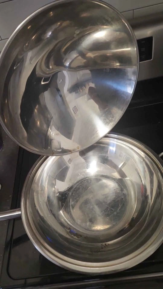 Versatile kitchen set! Includes a stainless steel wok pan with lid, great for stir-fries. Also a super large stainless steel stock pot with lid, perfect for big batches of soup or pasta. Plus, a handy paper towel holder that attaches to your stove handle. All stainless steel. Includes strainer.