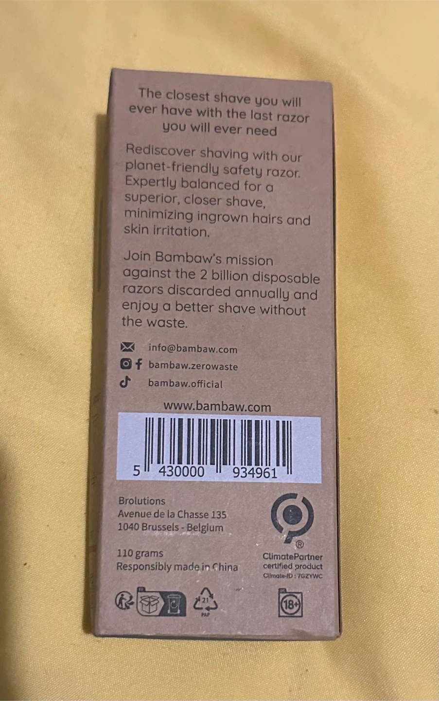 Selling a brand new Bambaw safety razor, still in its original box! It's a planet-friendly safety razor designed for a superior and closer shave while minimizing ingrown hairs and skin irritation. The box includes the safety razor. Blades NOT included. Easy to assemble.