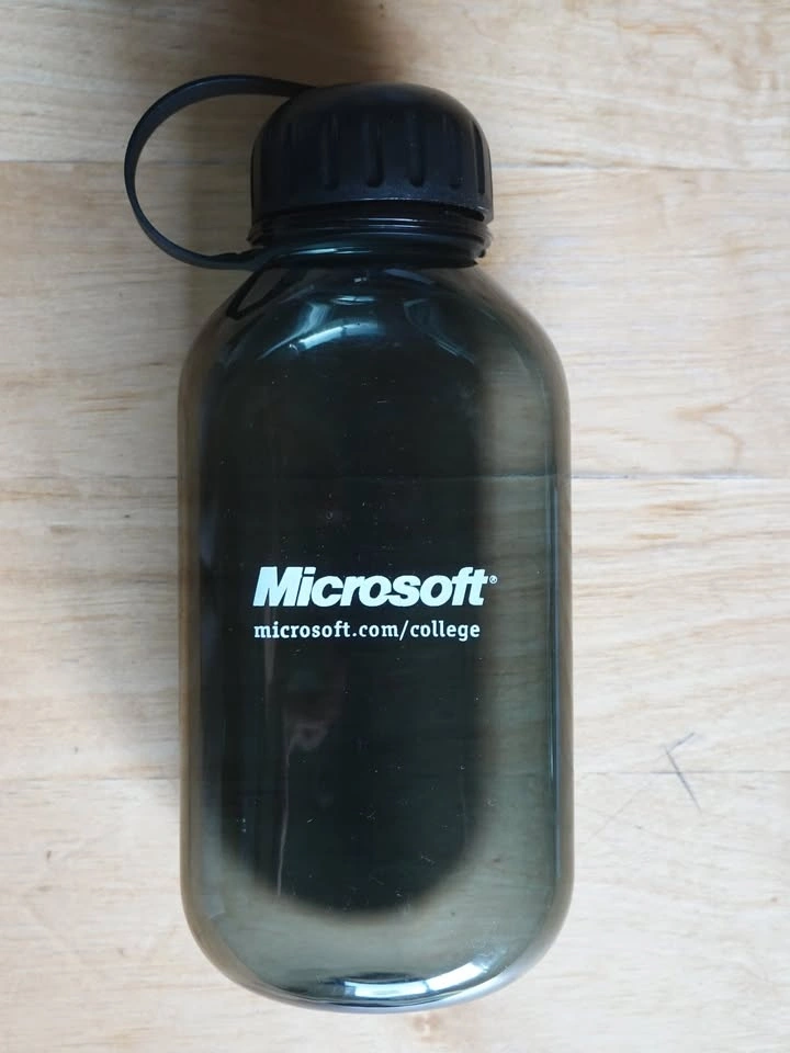 This is a 1 liter water bottle, approximately 9 inches tall, with fill lines on the side. It's a smokey grey color and made of very rigid plastic. Pickup near Fraser St and 20th Ave.