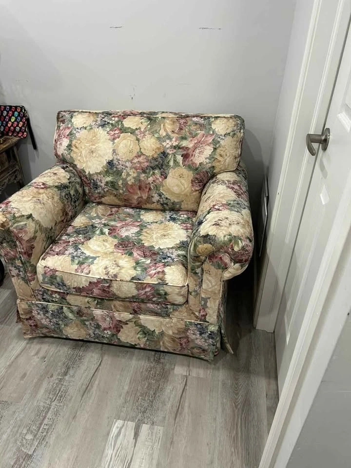 * Antique Floral Sofa Chair (classic, plush cushions)