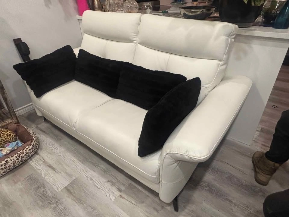 * White Genuine Leather Loveseat Sofa (in like new condition)