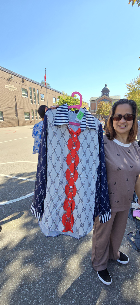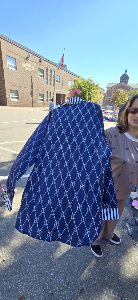 Here's a fun patterned long sleeve shirt! It has a unique design with a mix of colours and patterns. The shirt looks to be in good condition and would be a stylish addition to any wardrobe