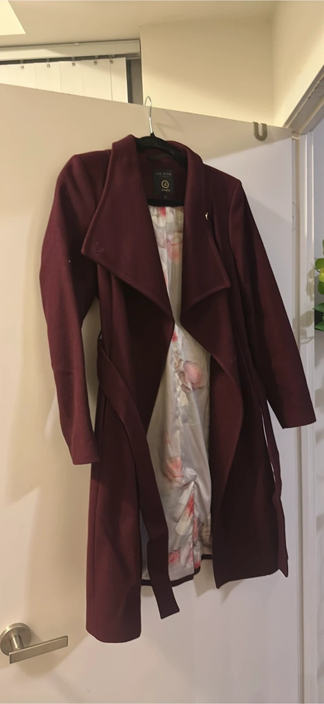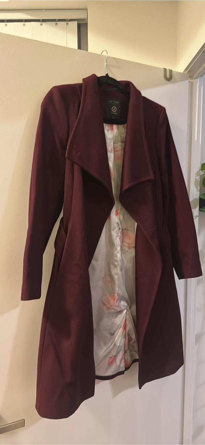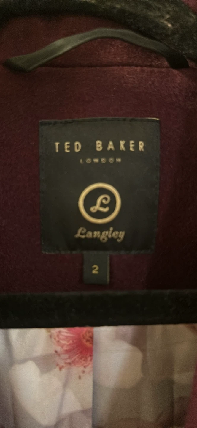 Selling a Ted Baker Langley coat in a beautiful burgundy colour. It's a size 2 and in great condition. Perfect for adding a touch of elegance to your wardrobe!