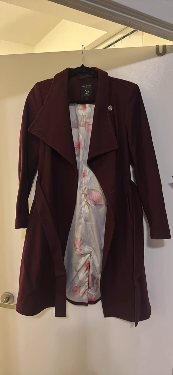 Selling a Ted Baker Langley coat in a beautiful burgundy colour. It's a size 2 and in great condition. Perfect for adding a touch of elegance to your wardrobe!