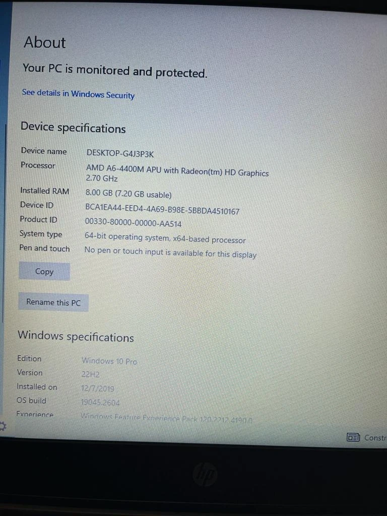 Processor: AMD A6 4400M APU with radeon(tm) HD Graphics 2.70 GHz