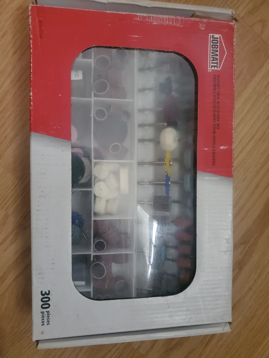 Selling a Jobmate rotary tool accessory kit with 300pcs. It comes with a variety of accessories for rotary tools and bits are new. The kit includes a manual as well, packaging is a little beat up