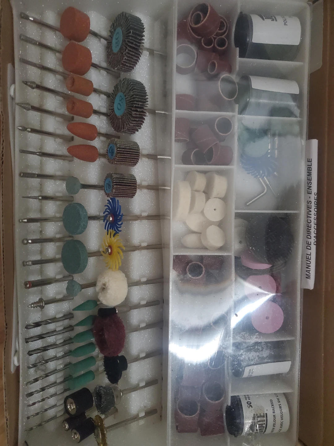 Selling a Jobmate rotary tool accessory kit with 300pcs. It comes with a variety of accessories for rotary tools and bits are new. The kit includes a manual as well, packaging is a little beat up