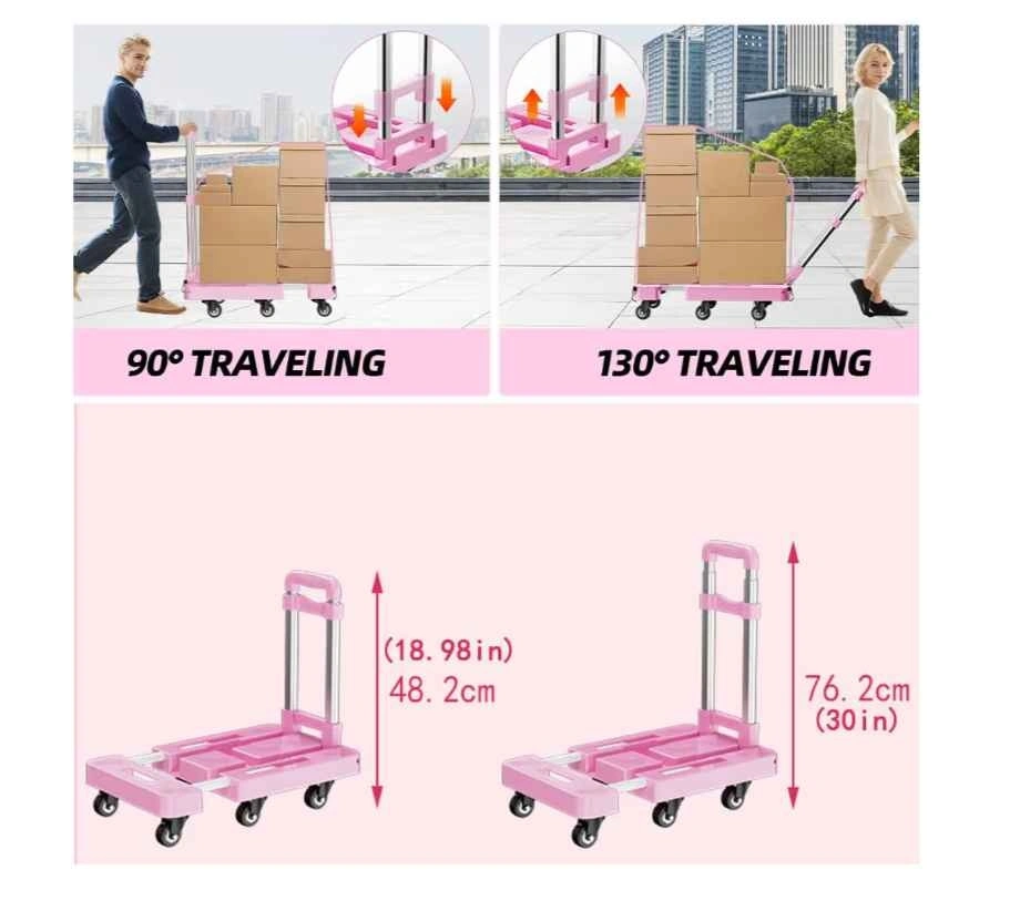 Pink Foldable Hand Truck Dolly Cart w/ Telescoping Handle 550 LB