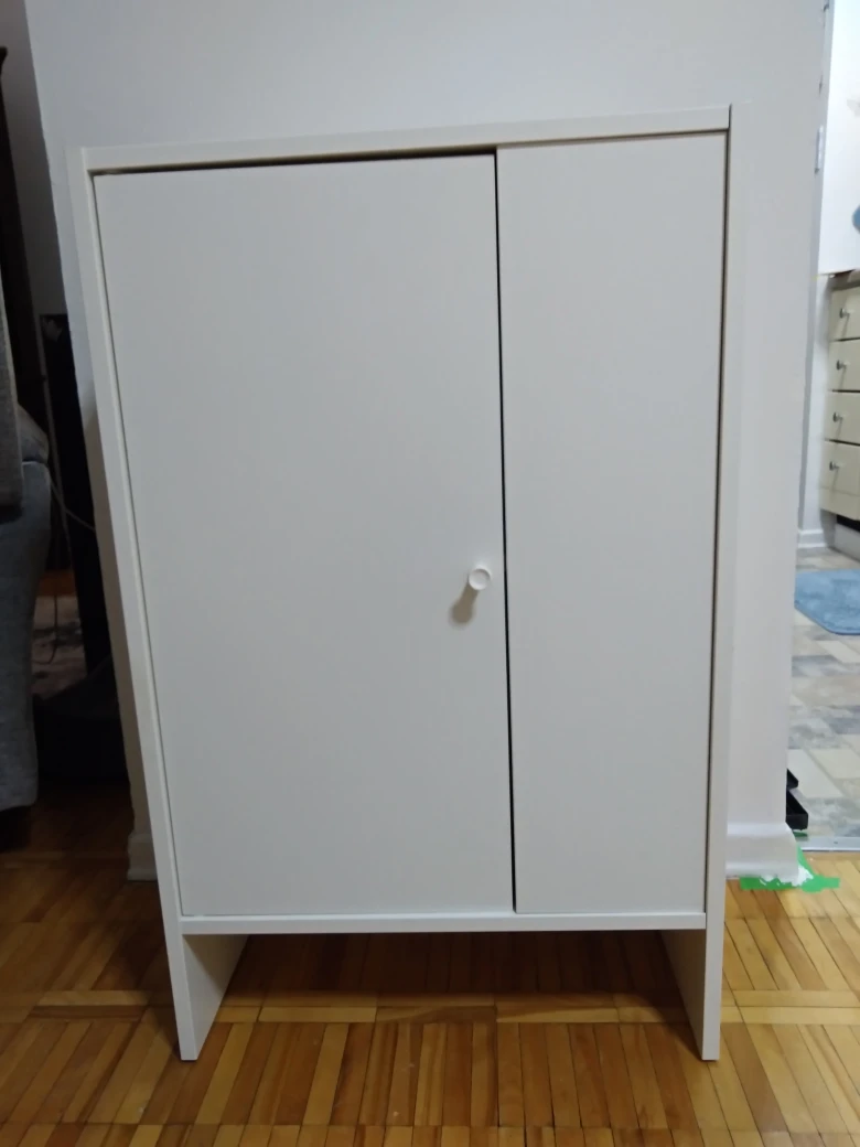 Baggebo storage cabinet by Ikea. White, 20"W x 12" D x 31.5" H. Like new, no issues. Pick up near GM Oshawa after 4 pm.