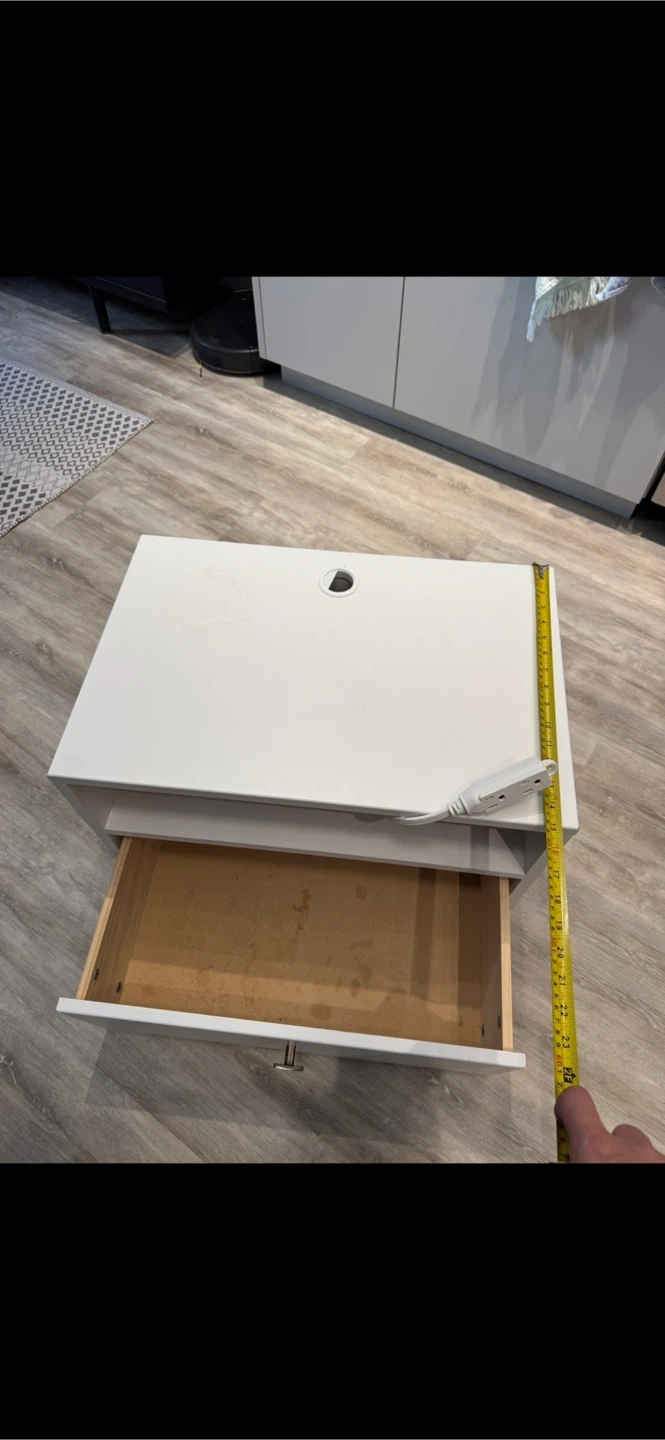 Buy & SellWhite Nightstand with Drawer and Cable ManagementWhite Nightstand with Drawer and Cable Management$25Small white nightstand. One. drawer. Cable management hole on top. 22 “x15”x14”ConditionGoodWHERE TO MEETCheck LocationView MapSELLERKristianaKitsilano685 reviews1 chats·1 favorites·46 viewsSEND CHAT TO SELLERHi Kristiana! I’m interested in your listing.Hi Kristiana! I’m interested in your listing.Get the Karrot app to chatSign In to chat