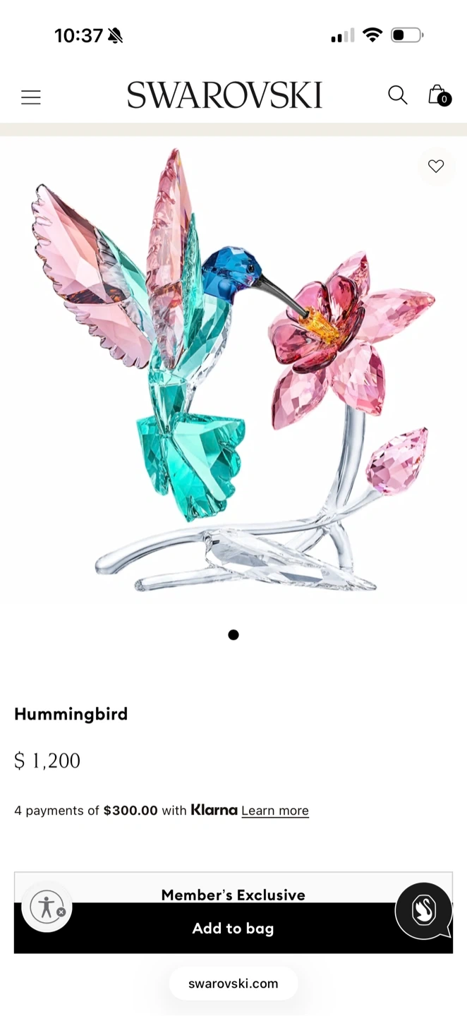 Buy & SellSwarovski Crystal Hummingbird FigurineSwarovski Crystal Hummingbird Figurine$1,000Hummingbird $1000 Lovebirds $800 2 Crystal bases each $75 Bundle $1750 Brand new and comes with boxWHERE TO MEETCheck LocationView MapSELLERMoeRichmond Hill E191 review0 chats·0 favorites·6 viewsSEND CHAT TO SELLERHi Moe! I’m interested in your listing.Hi Moe! I’m interested in your listing.Get the Karrot app to chatSign In to chat