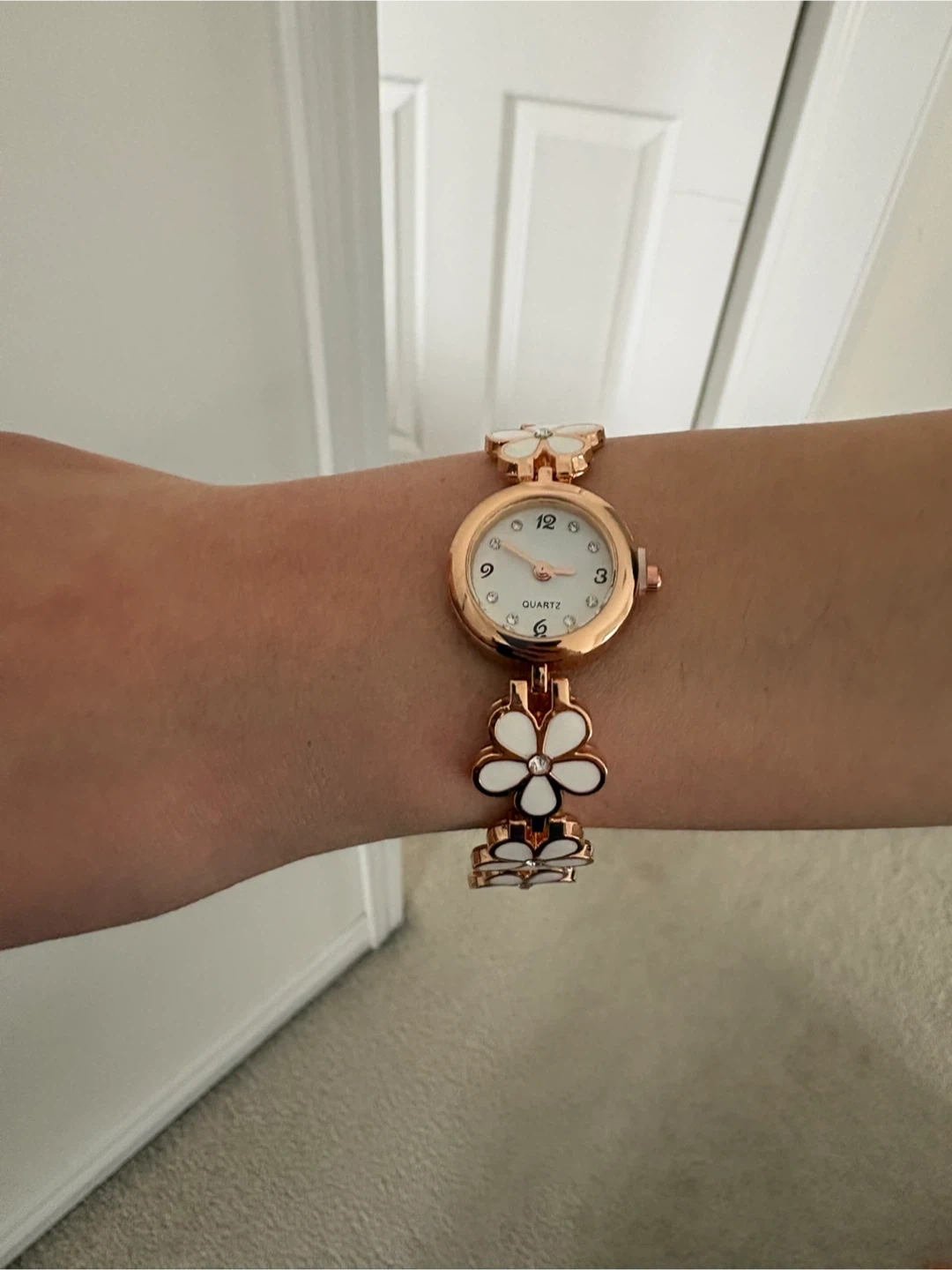 Elegant Rose Gold Floral Women’s Watch (No Box)