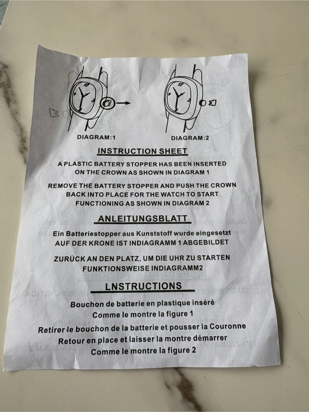 Battery is installed. To start the watch, simply remove the plastic stopper on the crown and push the crown back in (instruction sheet included).
