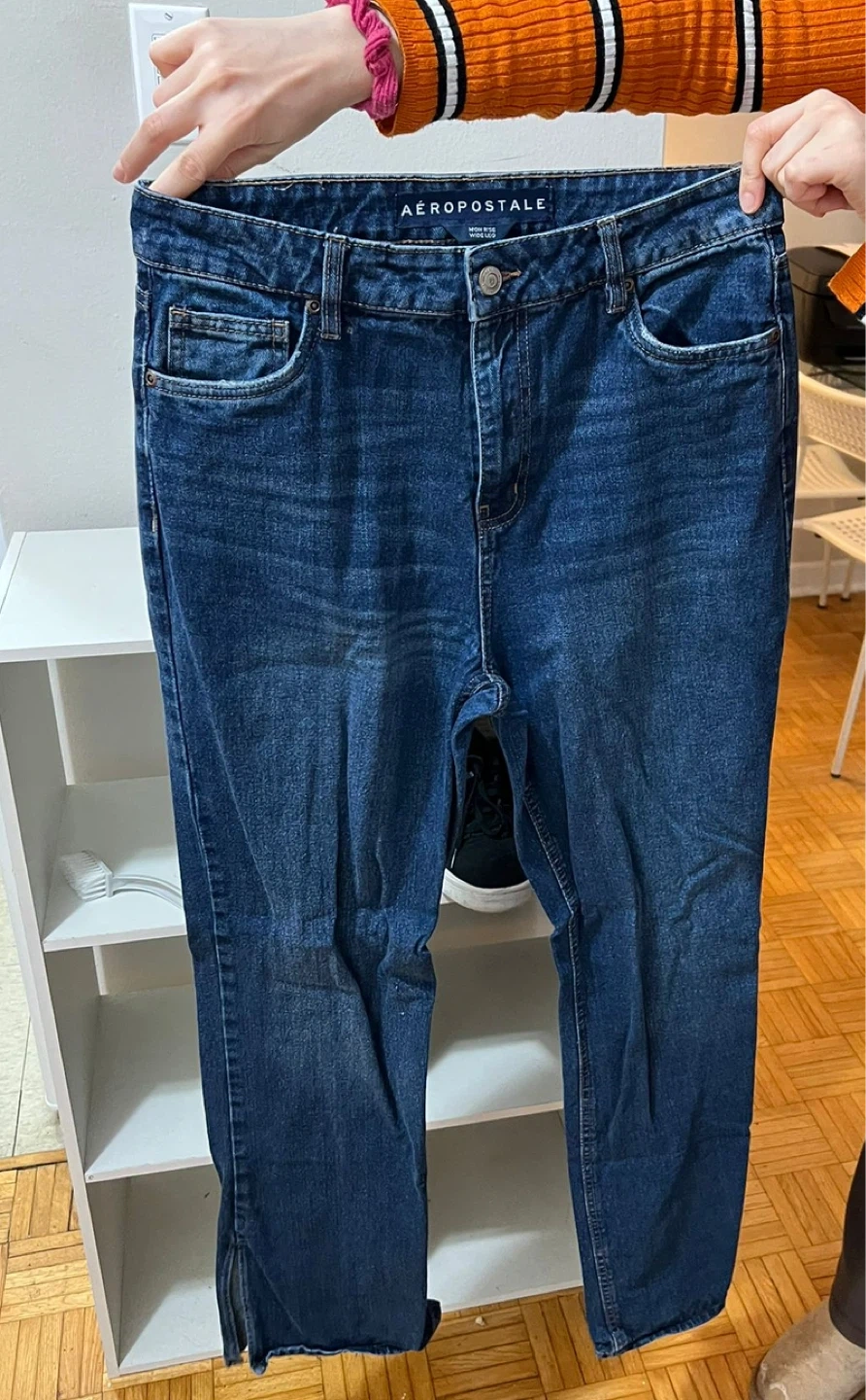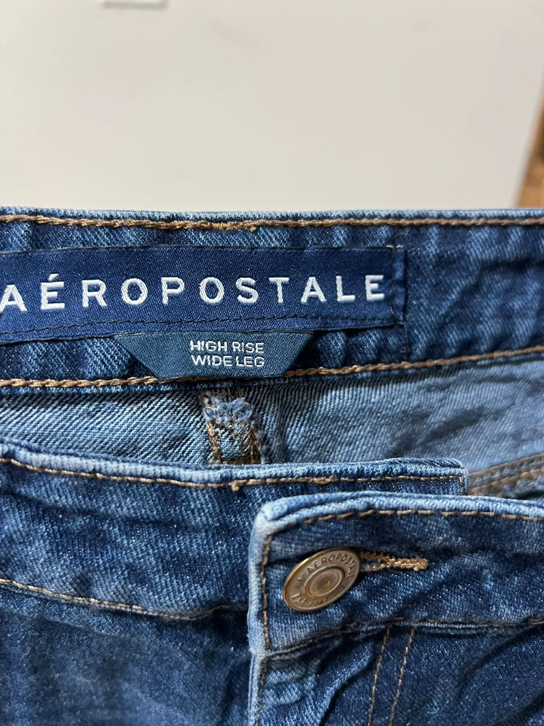 AEROPOSTALE high rise wide leg jeans in a dark wash blue. These jeans are made with a comfortable denim fabric. Great quality and fit, in great condition.