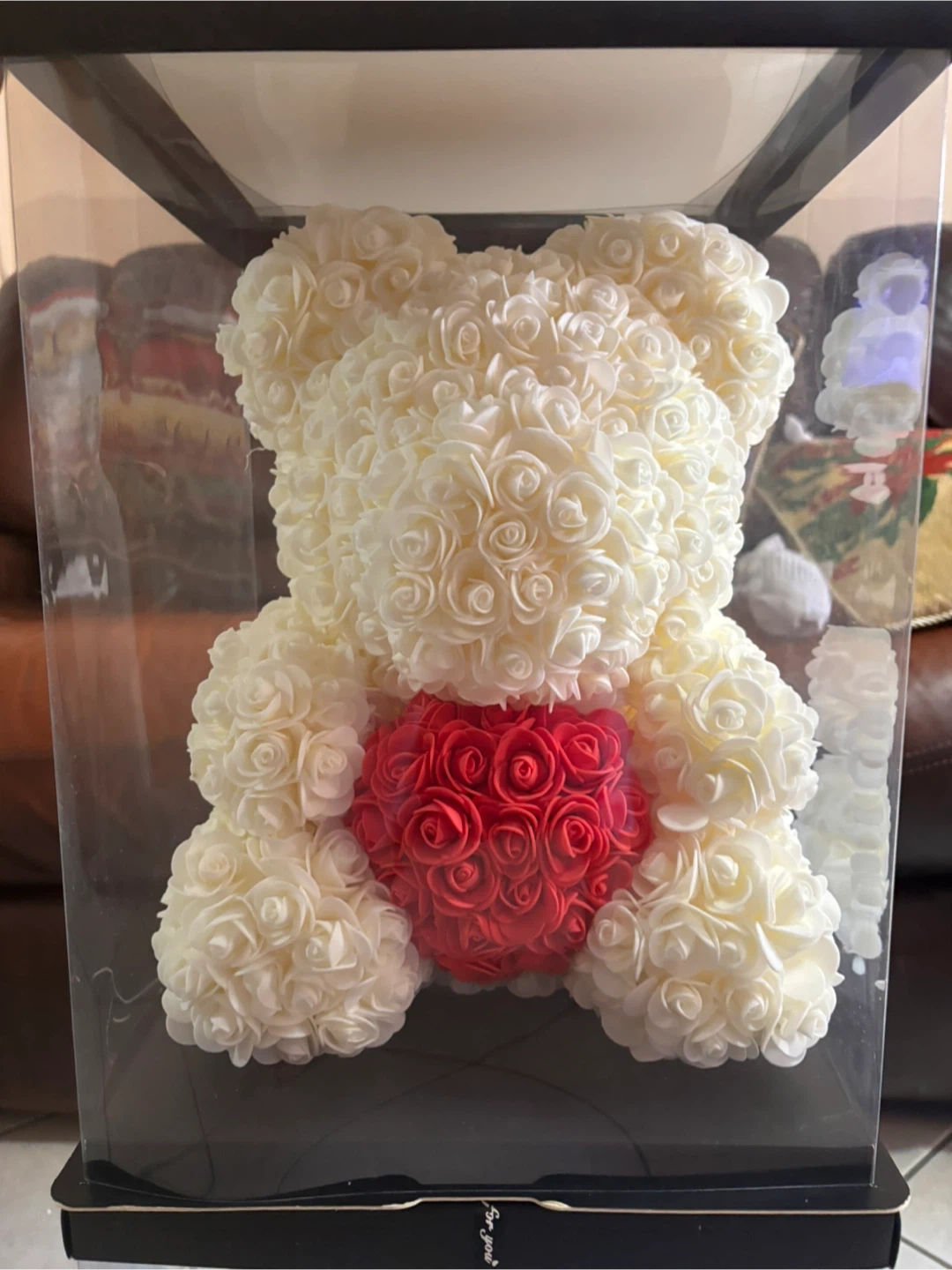 Selling a cute rose bear in a box! It's made of artificial roses, with a white bear and a red heart. Perfect as a gift for your loved ones!