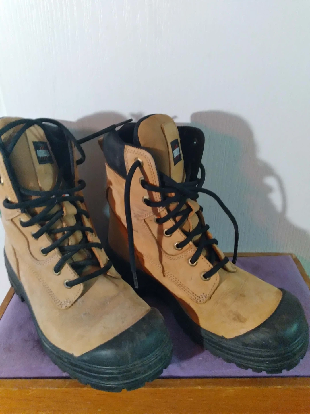 These Aggressor Dakota-2 work boots are a size CDN/US 8. Men’s They're made with durable materials and feature a steel toe for protection. Excellent for construction or demanding work environments!
