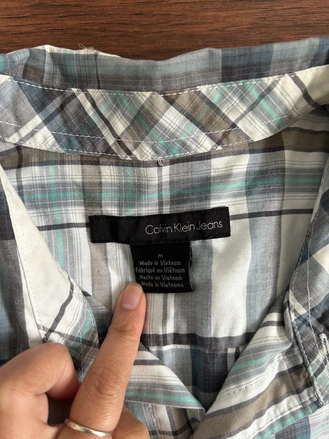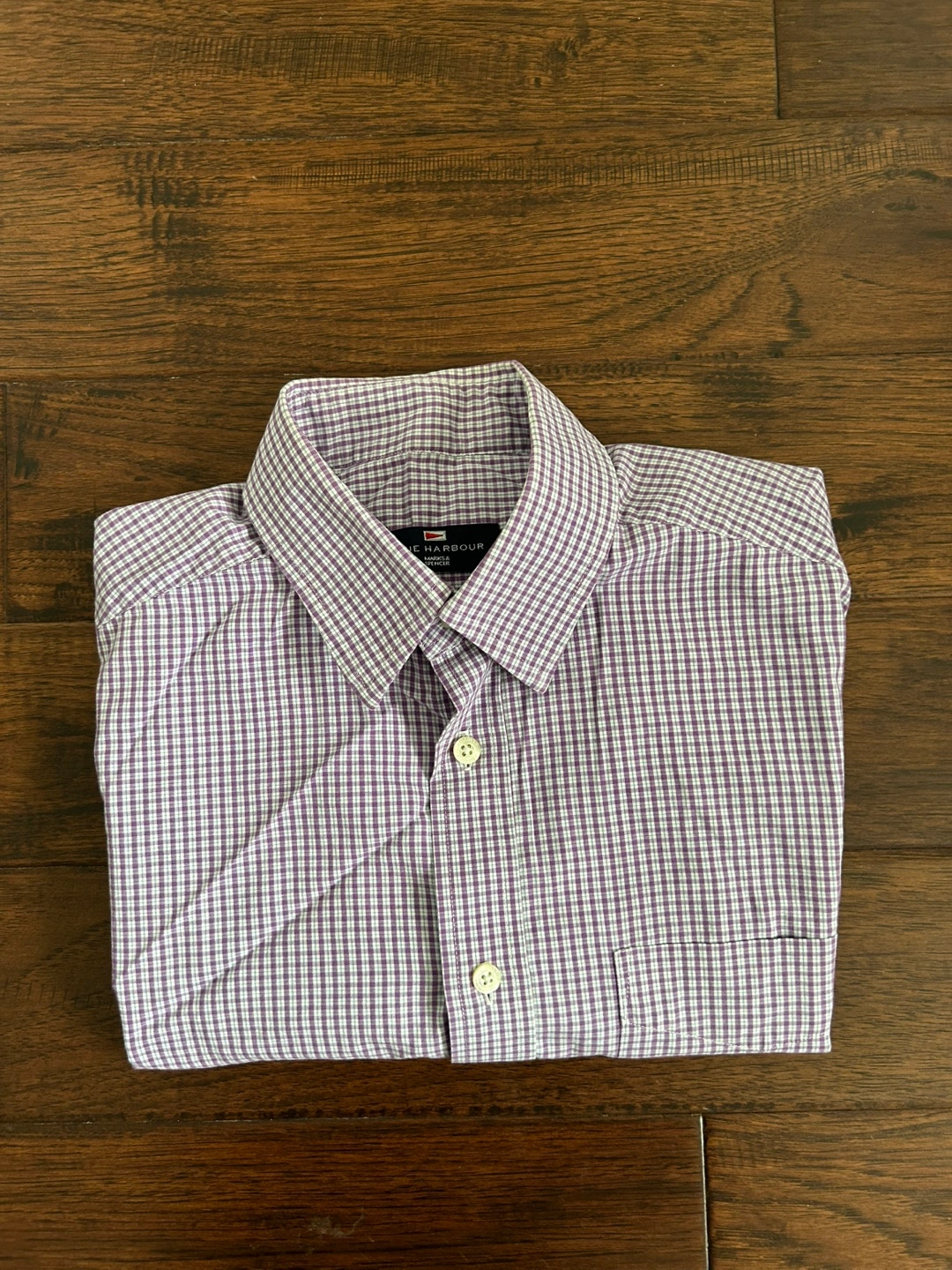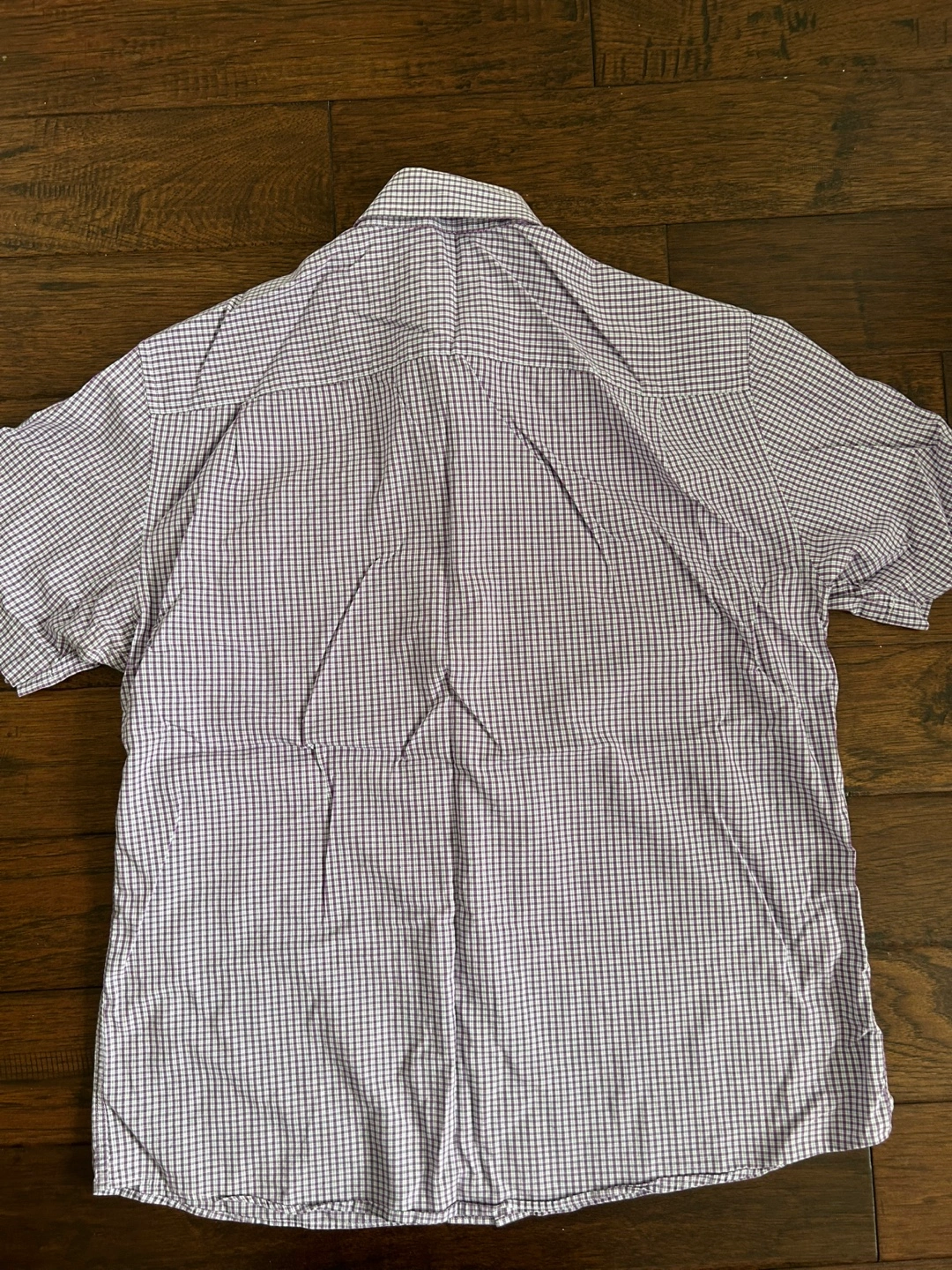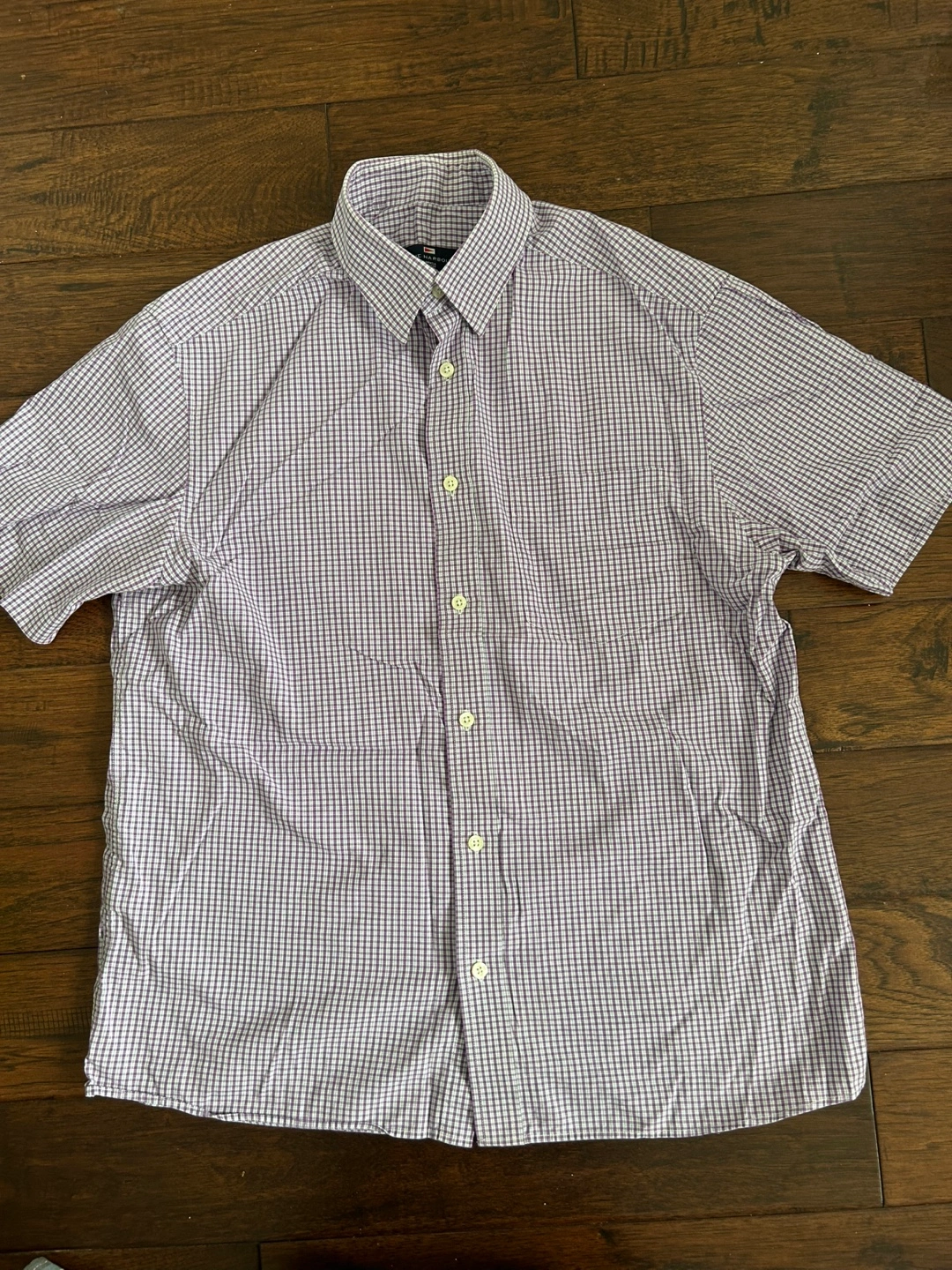 Bundle of two men's short sleeve button-down shirts from Calvin Klein Jeans and Mark & Spencer. One shirt features a purple and white plaid pattern, the other a blue, grey and white plaid pattern. Both are in good condition! Size medium.
