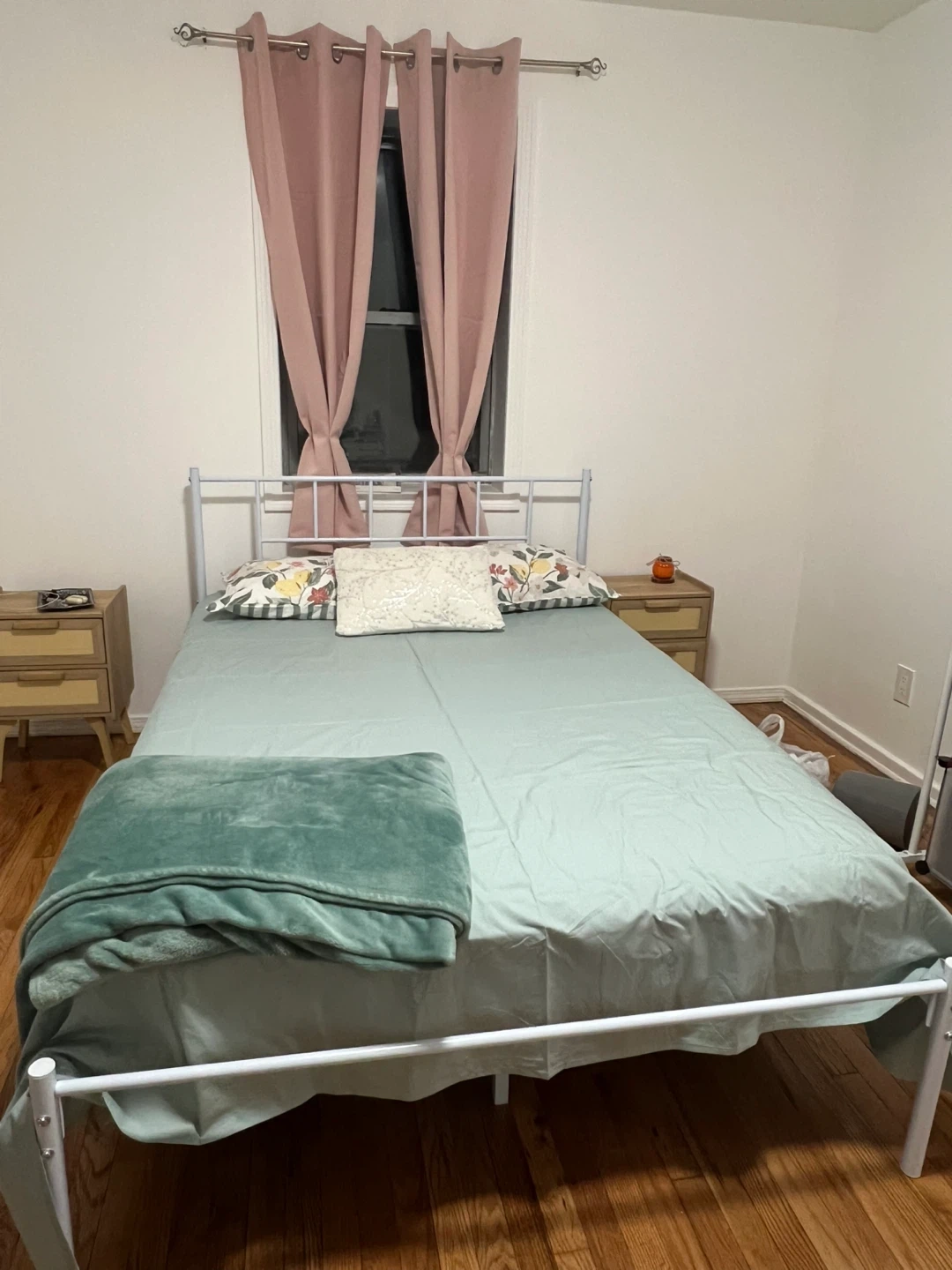 Selling a Full Metal Platform Bed Frame in white! It features a headboard, and heavy-duty steel slat support. No box spring is needed, and it's easy to assemble. The product dimensions are 77.7"L x 54.4"W x 38.6"H. It's durable, fade-resistant, squeak-resistant, and has under-bed storage. The material is iron and metal, and the style is industrial.