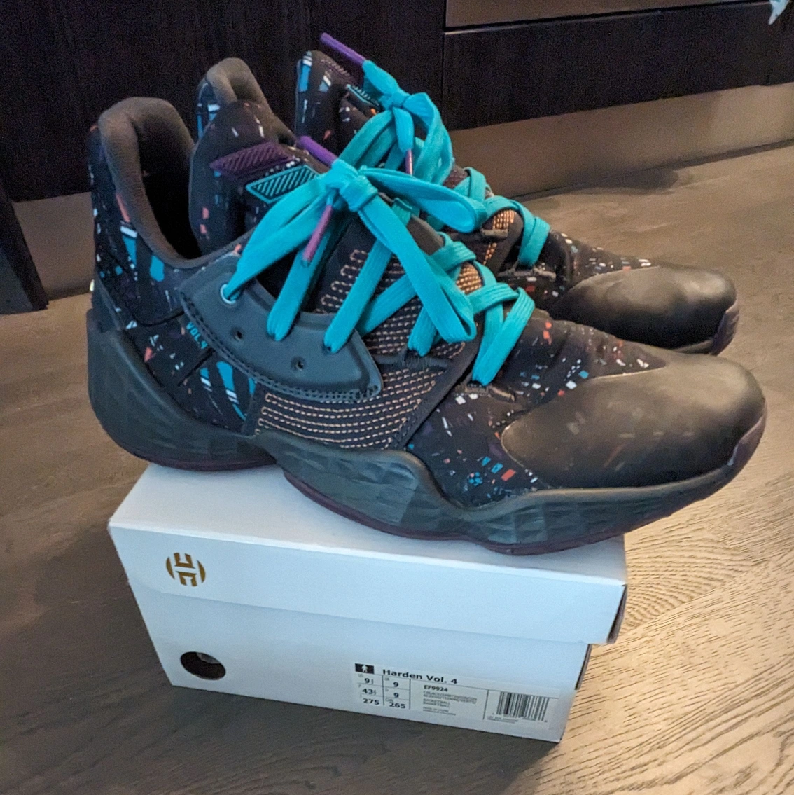 Adidas Harden Vol 4 basketball shoes in *galaxy* colour way. Lightly worn for a couple volleyball matches. Comes with original shoebox.