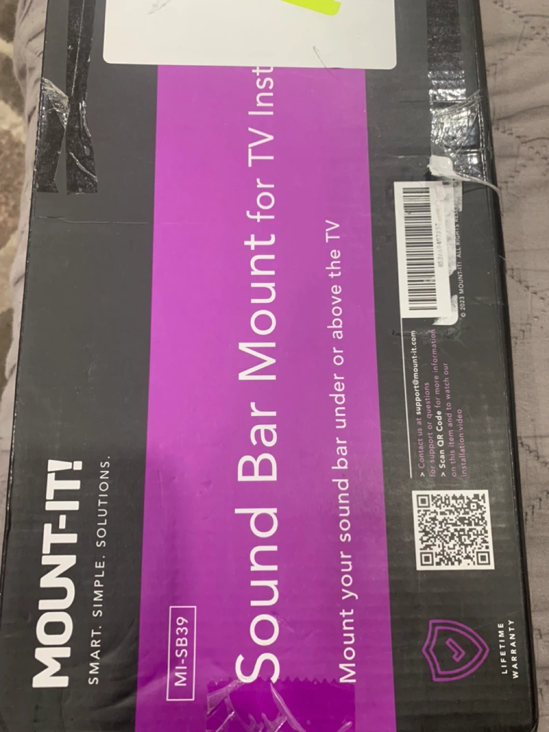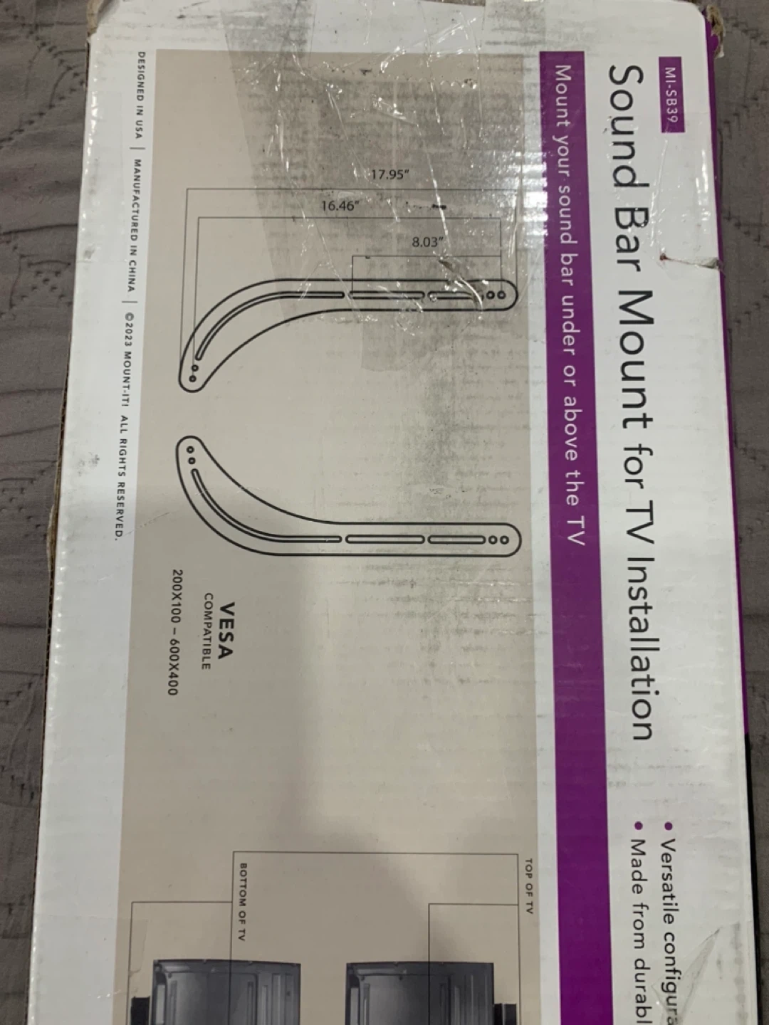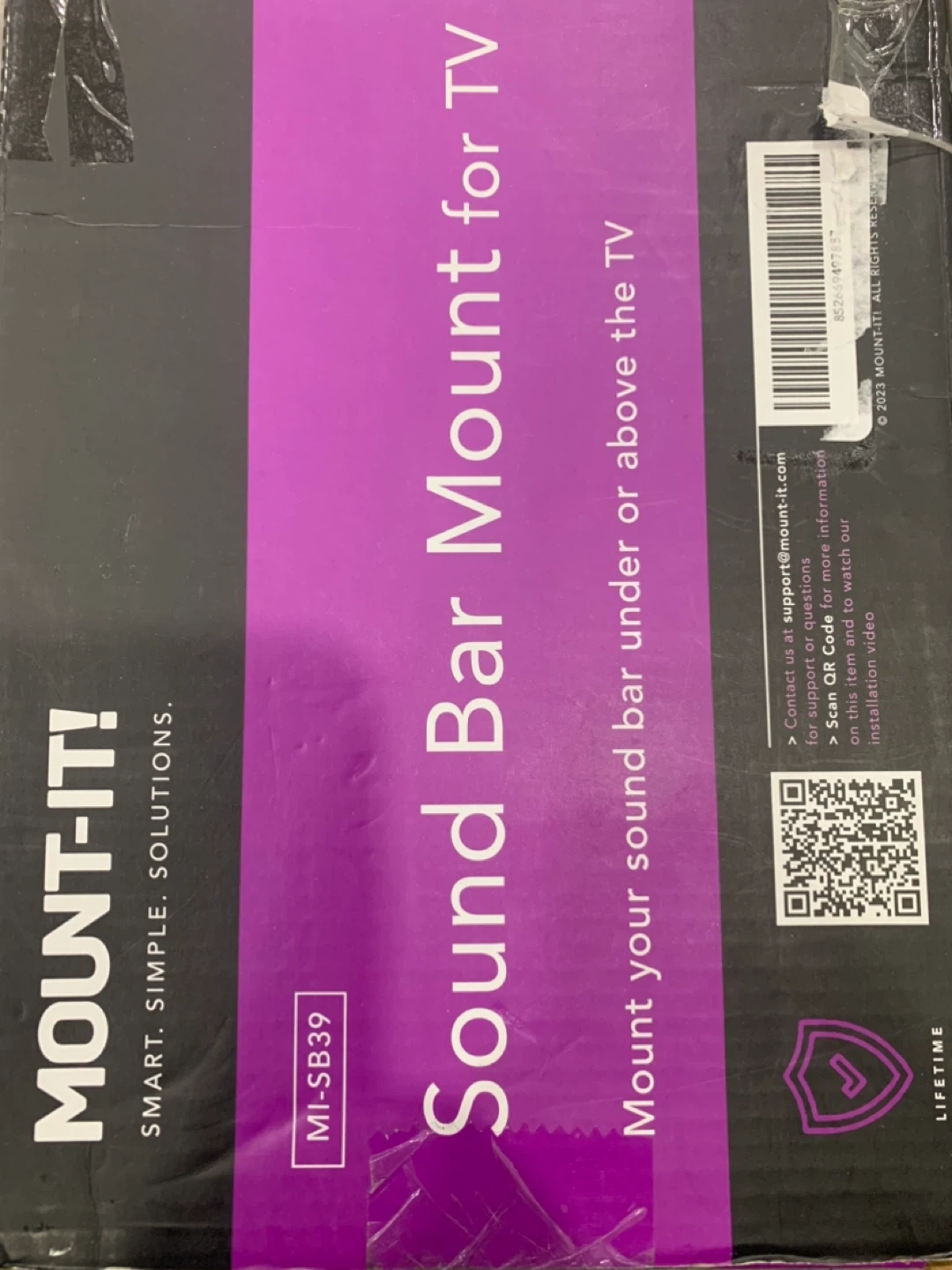 I'm selling a Mount-It! MI-SB39 Sound Bar Mount for TV. It allows you to mount your sound bar under or above the TV. Enjoy optimized sound quality with versatile configurations for different set-ups. Made from durable, high-strength steel. Comes with a lifetime warranty