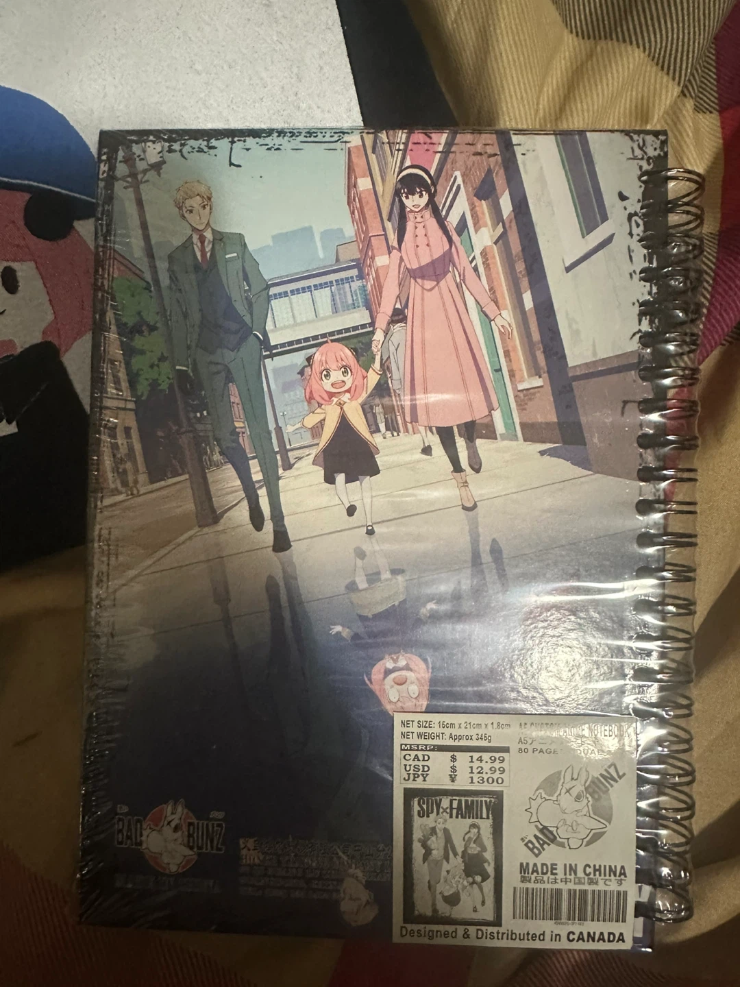 This is a Anya SPY x FAMILY t-shirt, a spiral-bound notebook, magnet, and gift bag