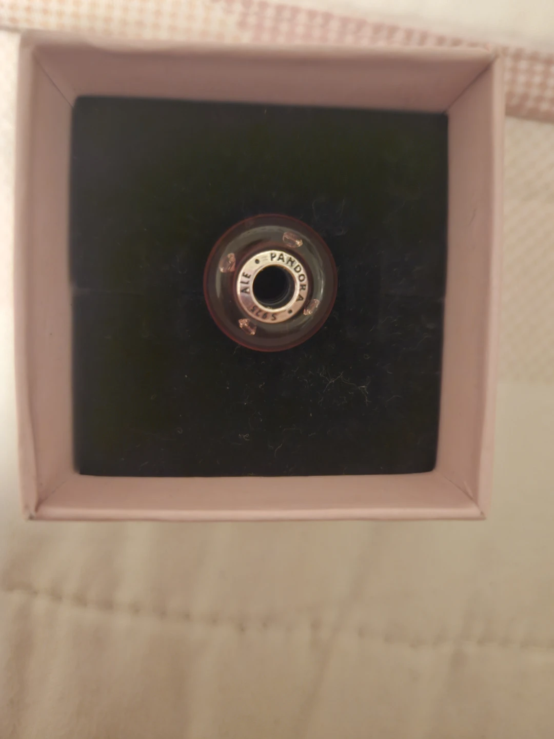 This is a Pandora charm made with red Murano glass. It features small accent stones and the Pandora logo engraved on the metal core. It's a lovely addition to any charm bracelet!