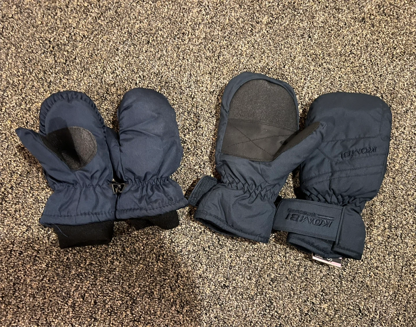 Navy blue Kombi winter mittens. Features elastic wrist cuffs with adjustable velcro straps for a snug fit. Keep hands warm during colder weather! $5 each , I have more
