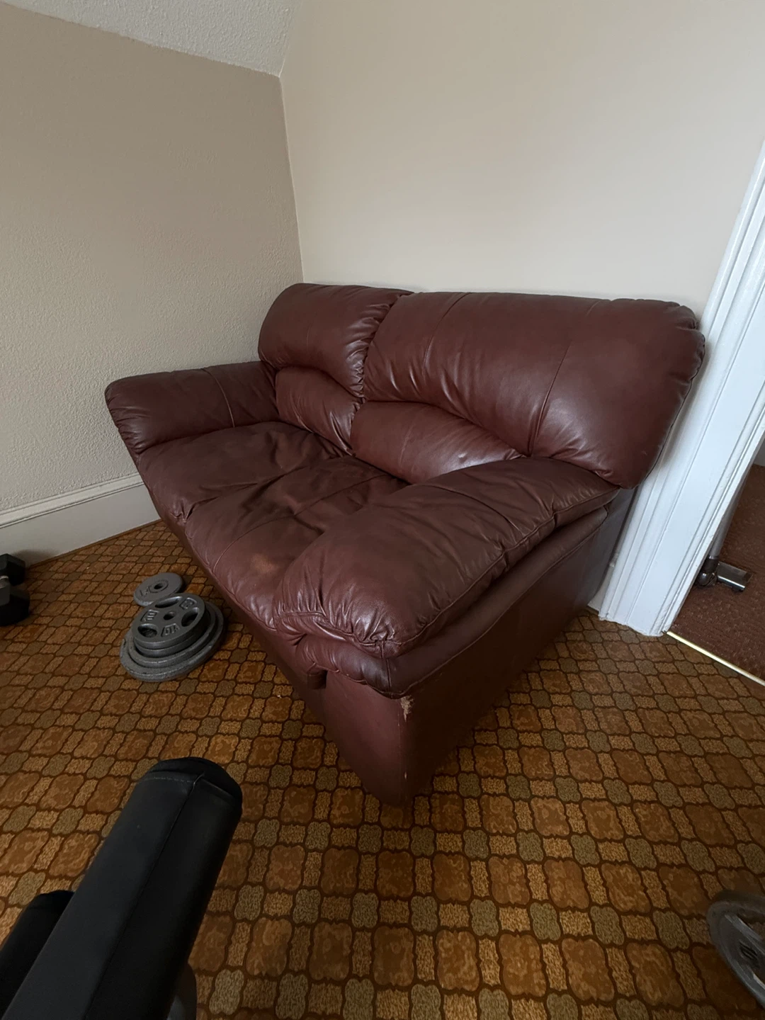 Brown Leather Loveseat Sofa