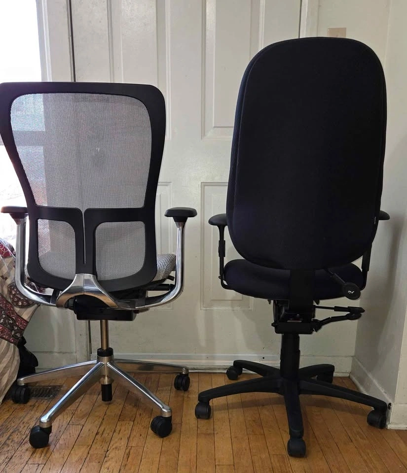 2 Ergonomic Office Chairs for Sale in Good condition. One is Haworth Brand and another one is ErgoCentric. Comes with height adjustment, tilt adjustment, adjustable arms, and seat adjustment. From a smoke and pet-free home. Feel free to text me for more info!