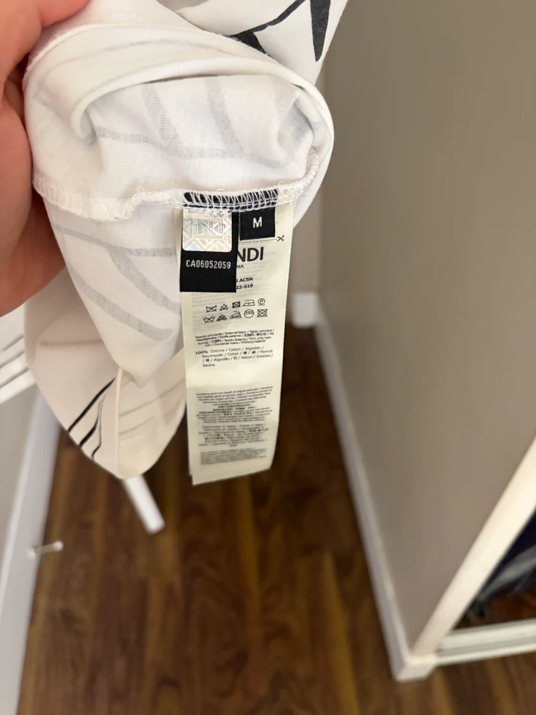 Fendi t-shirt in white. Size M. Made from 100% cotton. Features a unique graphic print.