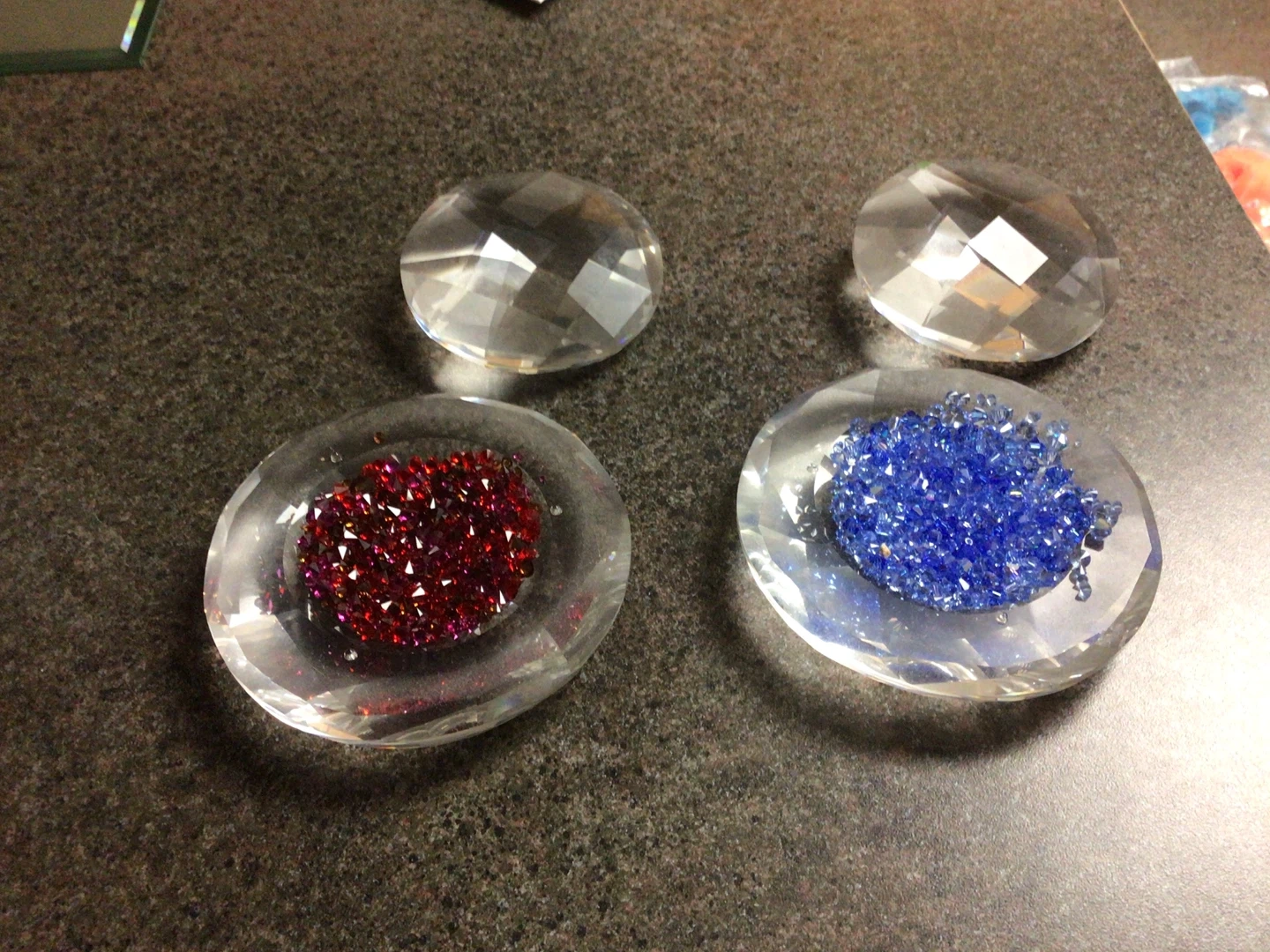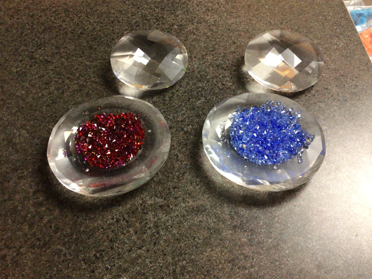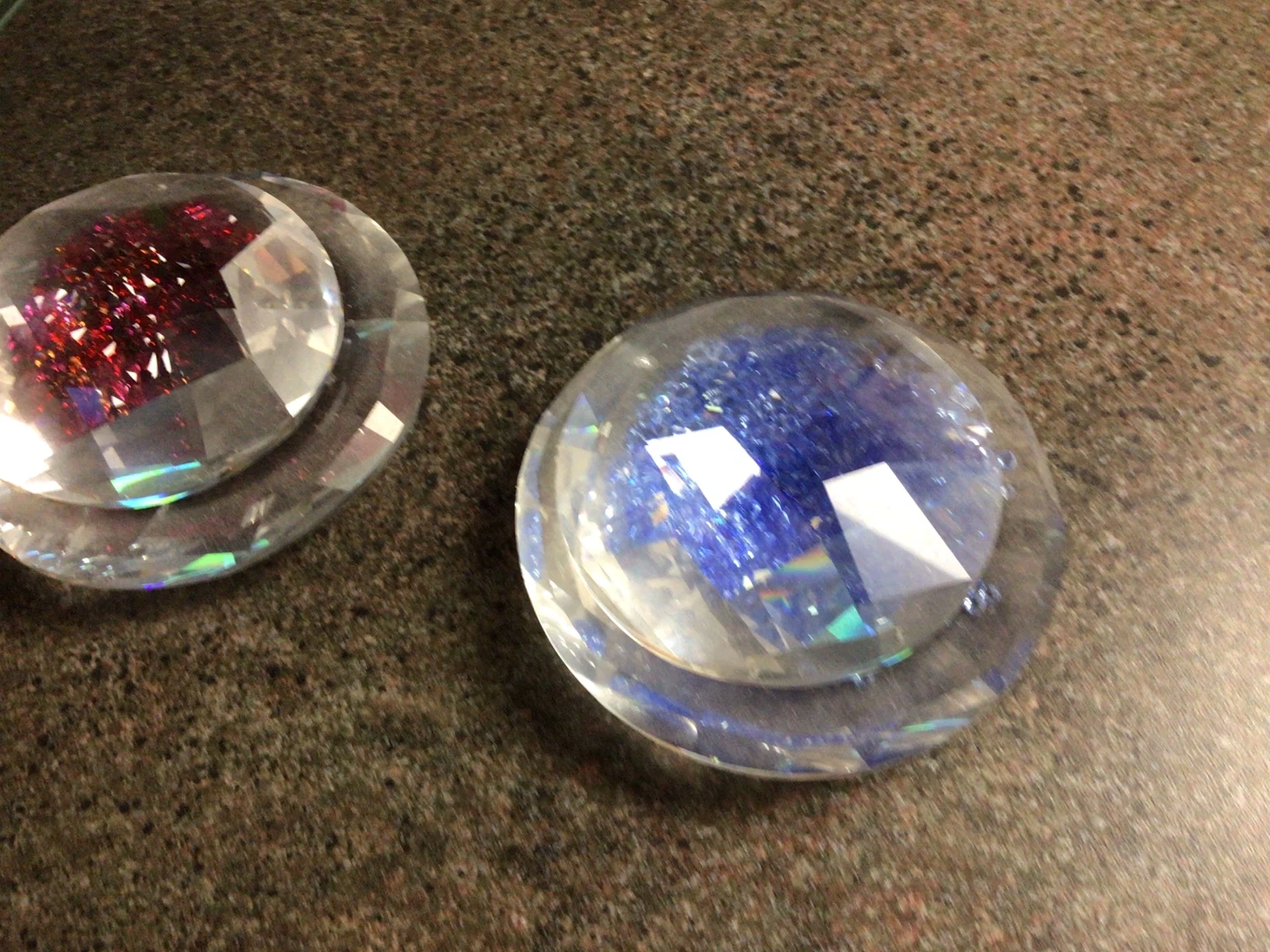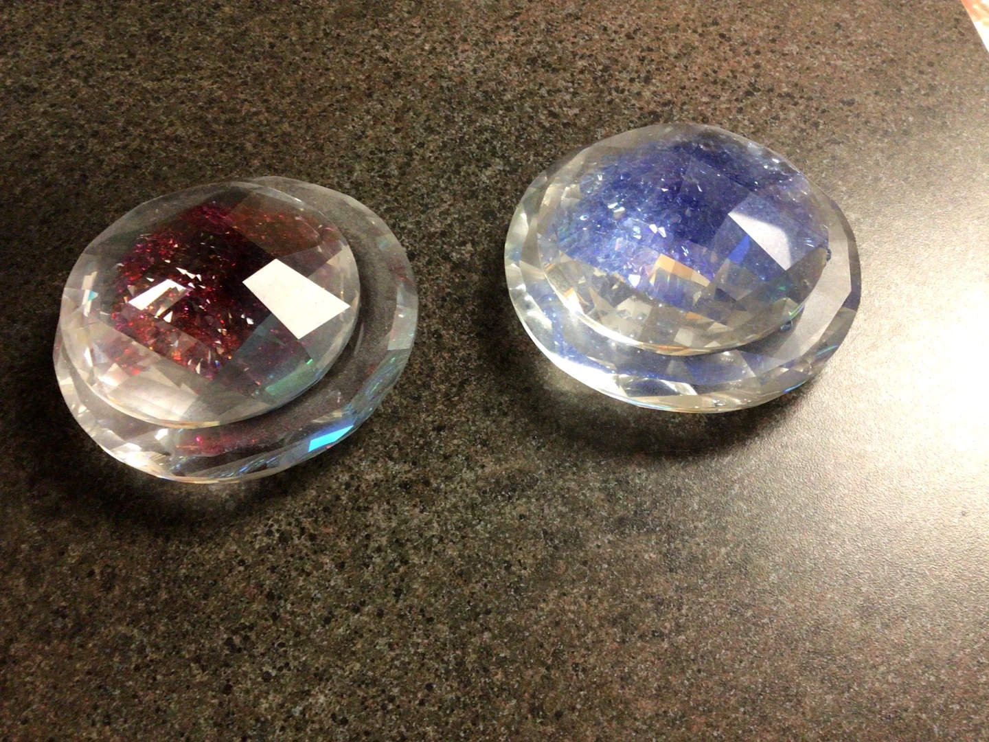 Selling a set of decorative Swarovski Crystal Jewellery, One is filled with red crystals, and the other with blue crystals. They're in great shape and would look lovely on a desk or shelf